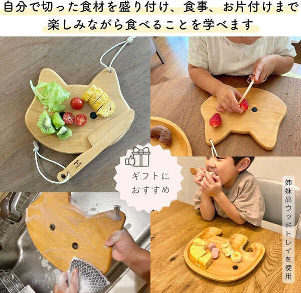 でも、木の温もりを感じる包丁と可愛いまな板があれば、