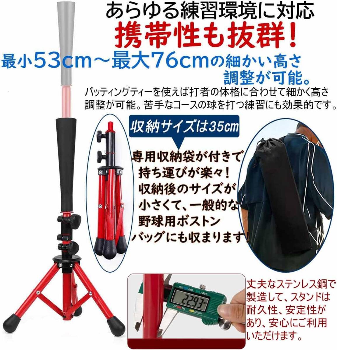 Product name: 子ども用 バッティングティー 高さ無段階調整53cm-76cm レッド 収納袋付き 野球 練習