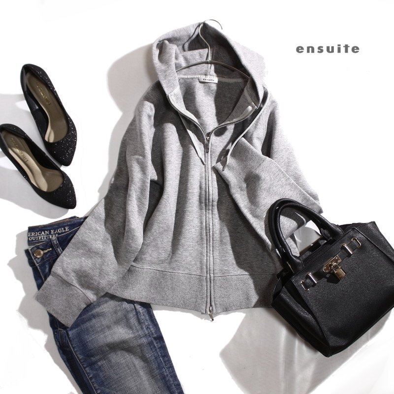 美品 ensuite エンスウィート 株) レナウン 合物 フード フルジップアップ パーカー L グレー ジャケット 羽織 トレーナー スエット ミセス
