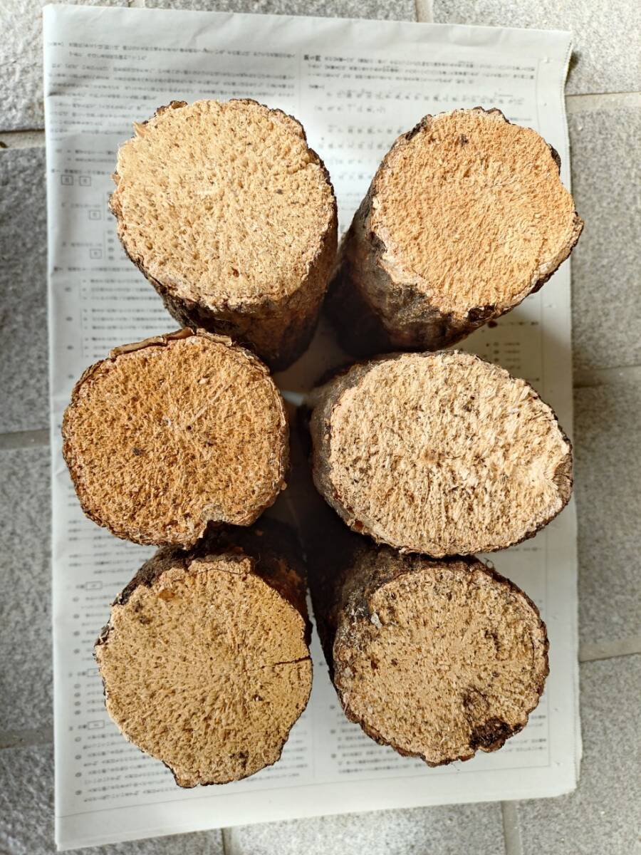 「クヌギ産卵木A品B品 直径約7~8cm前後」とありましたが7cmないヶ所もあります。 材質は柔らかめとの事でしたが、人によって感じ方は違うと思うので画像より判断して頂ければと思います。