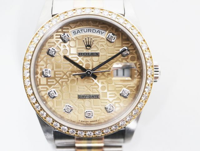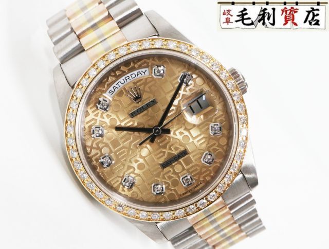 Product name: ロレックス ROLEX デイデイト 18349BIC ベゼルダイヤ ゴールドCOM文字盤 N番 トリドール 金無垢 自動巻き メンズ 【中古 】