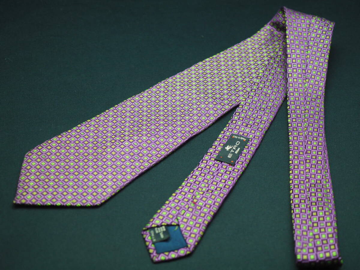 美品【ETRO エトロ】 F2592 パープル系 SILK ブランド ネクタイ 古着 良品 転売 仕入