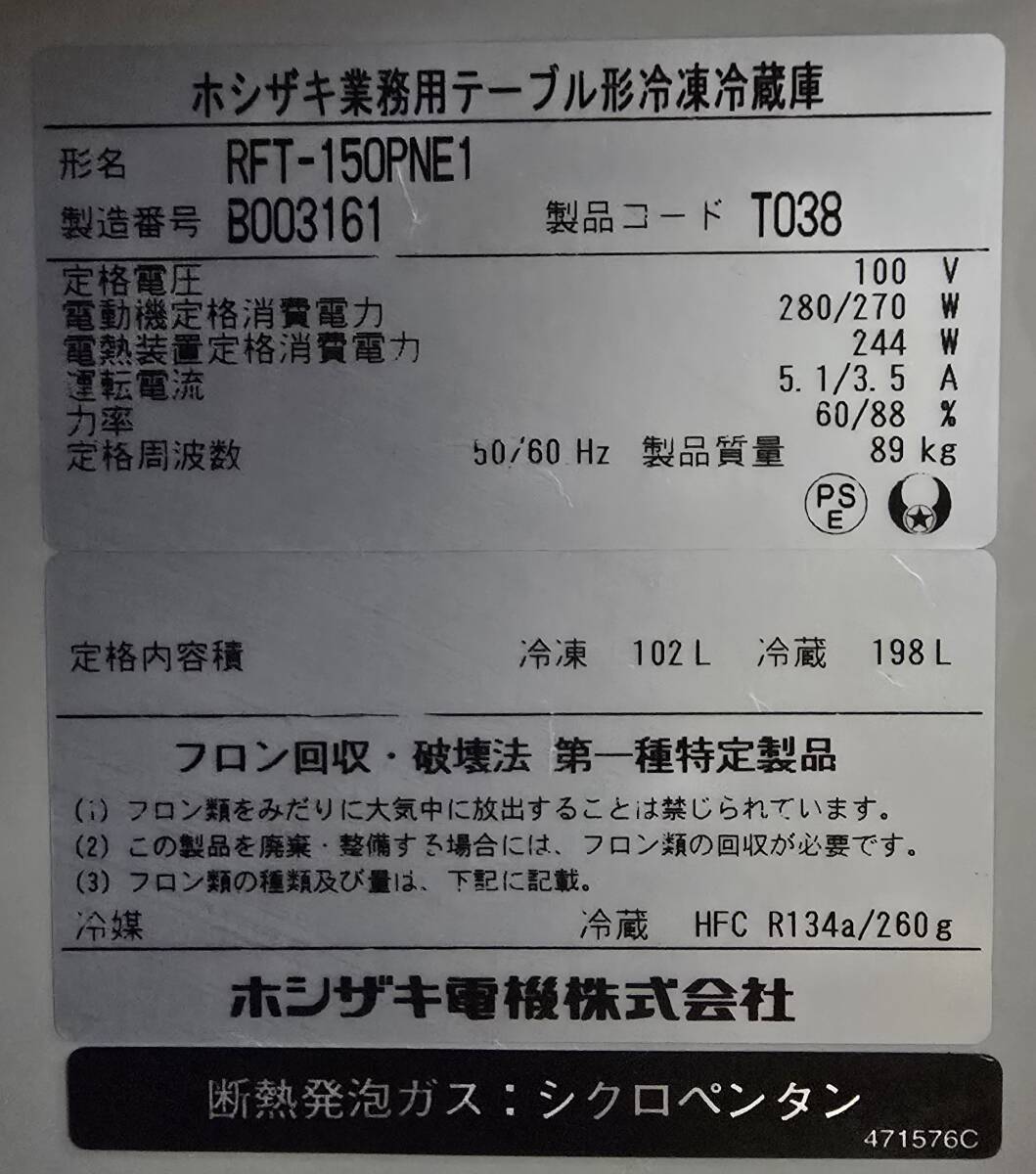 Product name: ホシザキ 台下冷凍冷蔵庫 RFT-150PNE1 2012年製 1500×600×800 業務用 飲食店 厨房機器 C2610-342