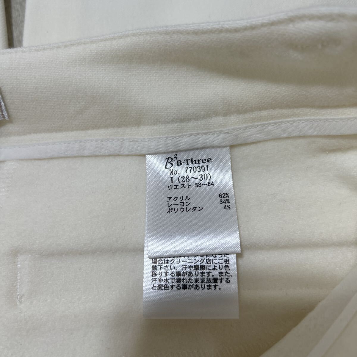 新品 タグつき 未使用品 B3 ビースリー パンツ ストレッチ オフィスカジュアル オフィス ロング丈 ストレート ホワイト 白 ⅠSサイズ