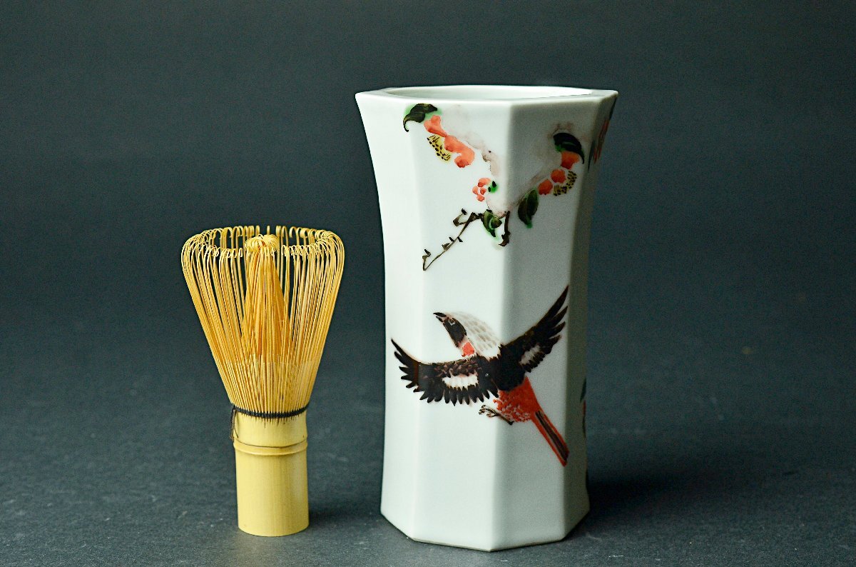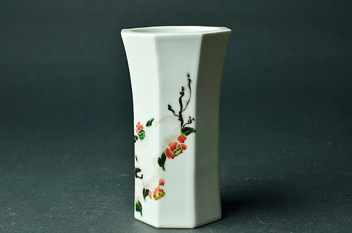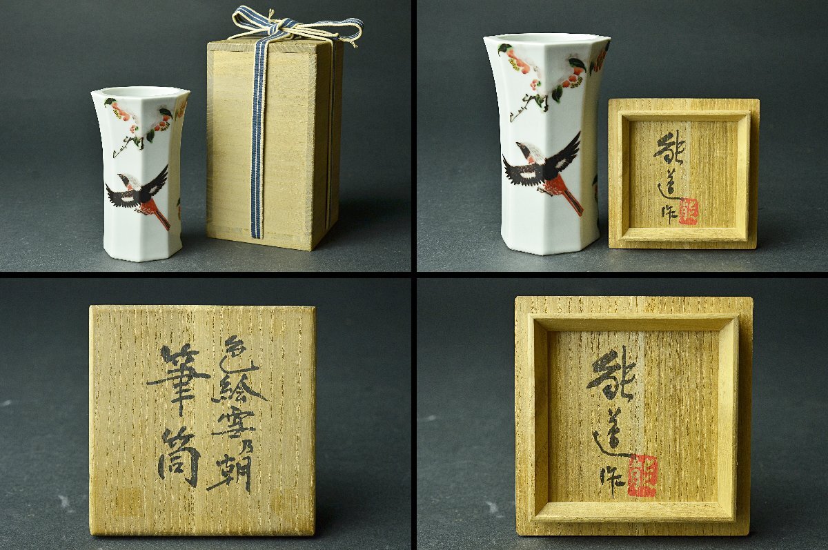 人間国宝【藤本能道】作 『色絵雪乃朝筆筒』