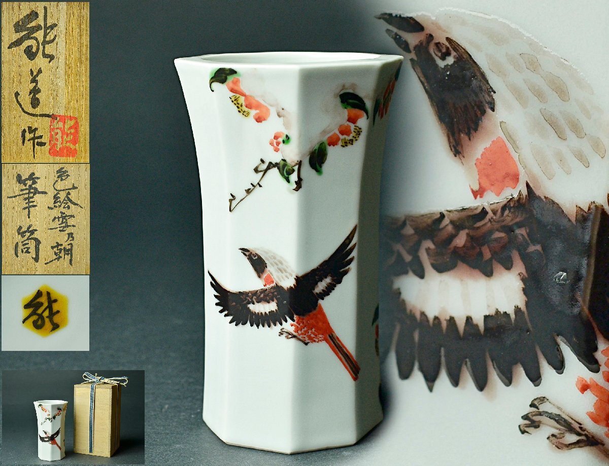 Product name: 【YB】人間国宝【藤本能道】作 『色絵雪乃朝筆筒』・共箱付属★師 富本憲吉勲二等旭日重光章受章25Y825
