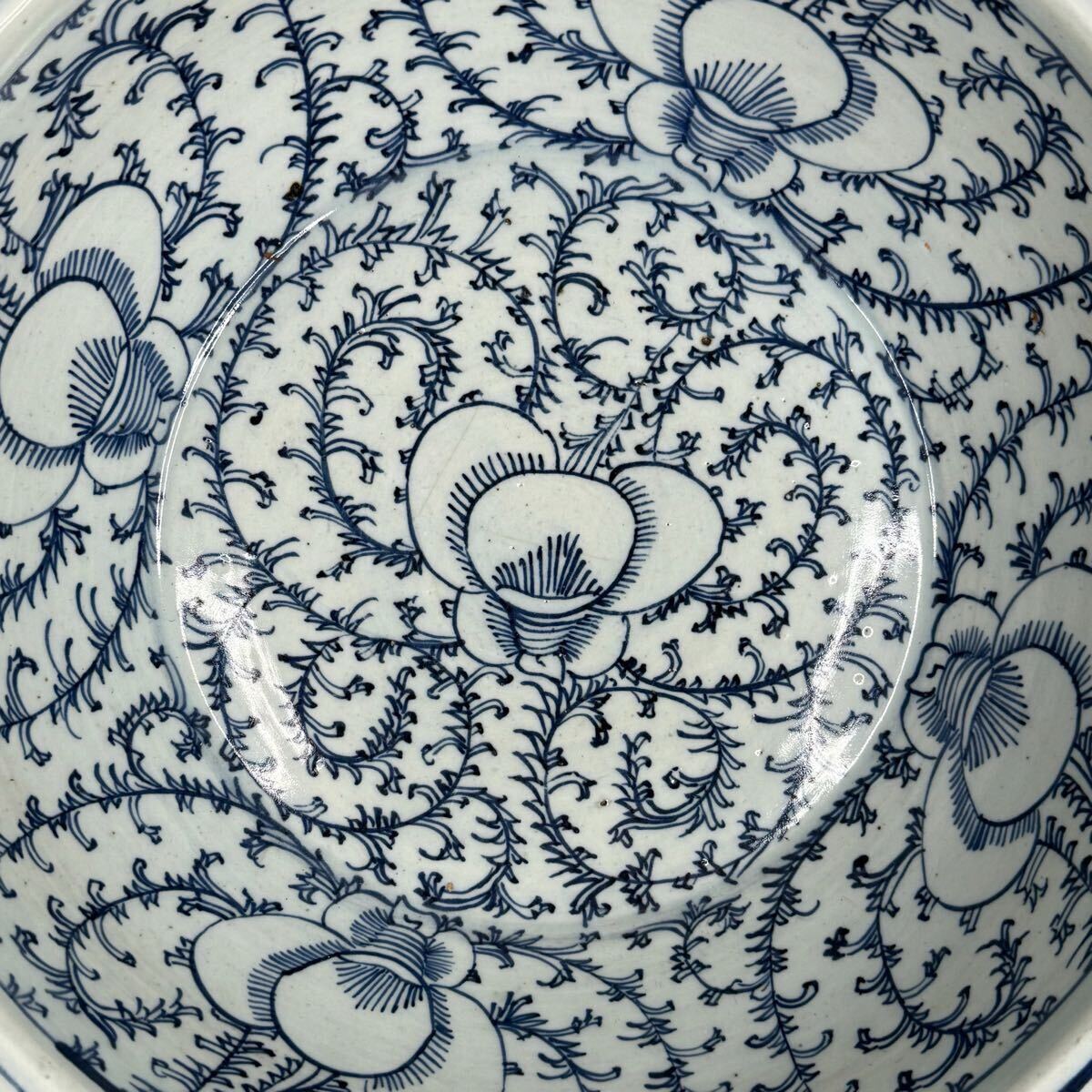 Product name: G6- 中国古美術 時代物 染付 盆 花草図 蝙蝠図 唐物 陶磁器 中国古玩 骨董品 傷あり