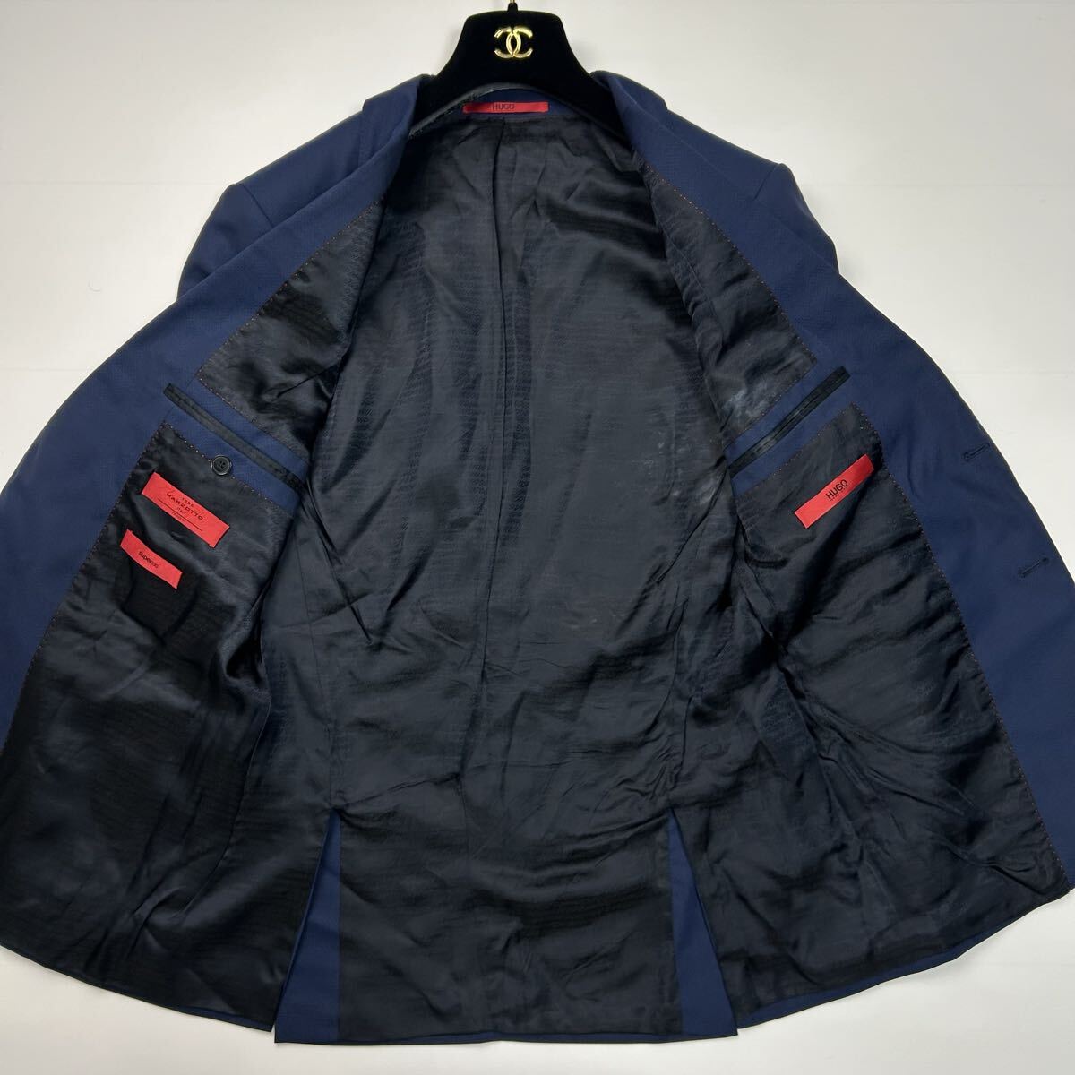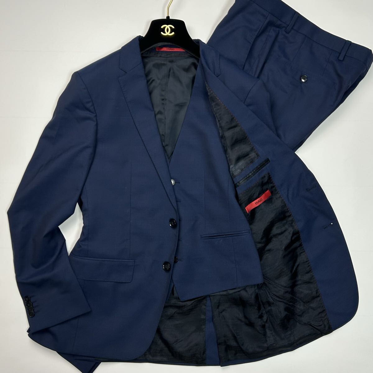 美品★ Lサイズ相当 HUGO BOSS ヒューゴボス 3ピース スーツ セットアップ 裏地柄 最高級 ネイビー 高級生地 super130 ITALY