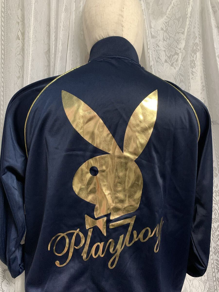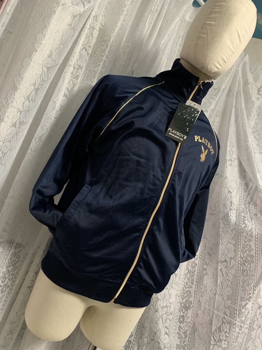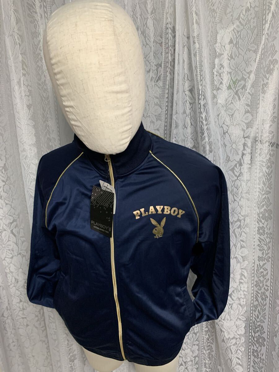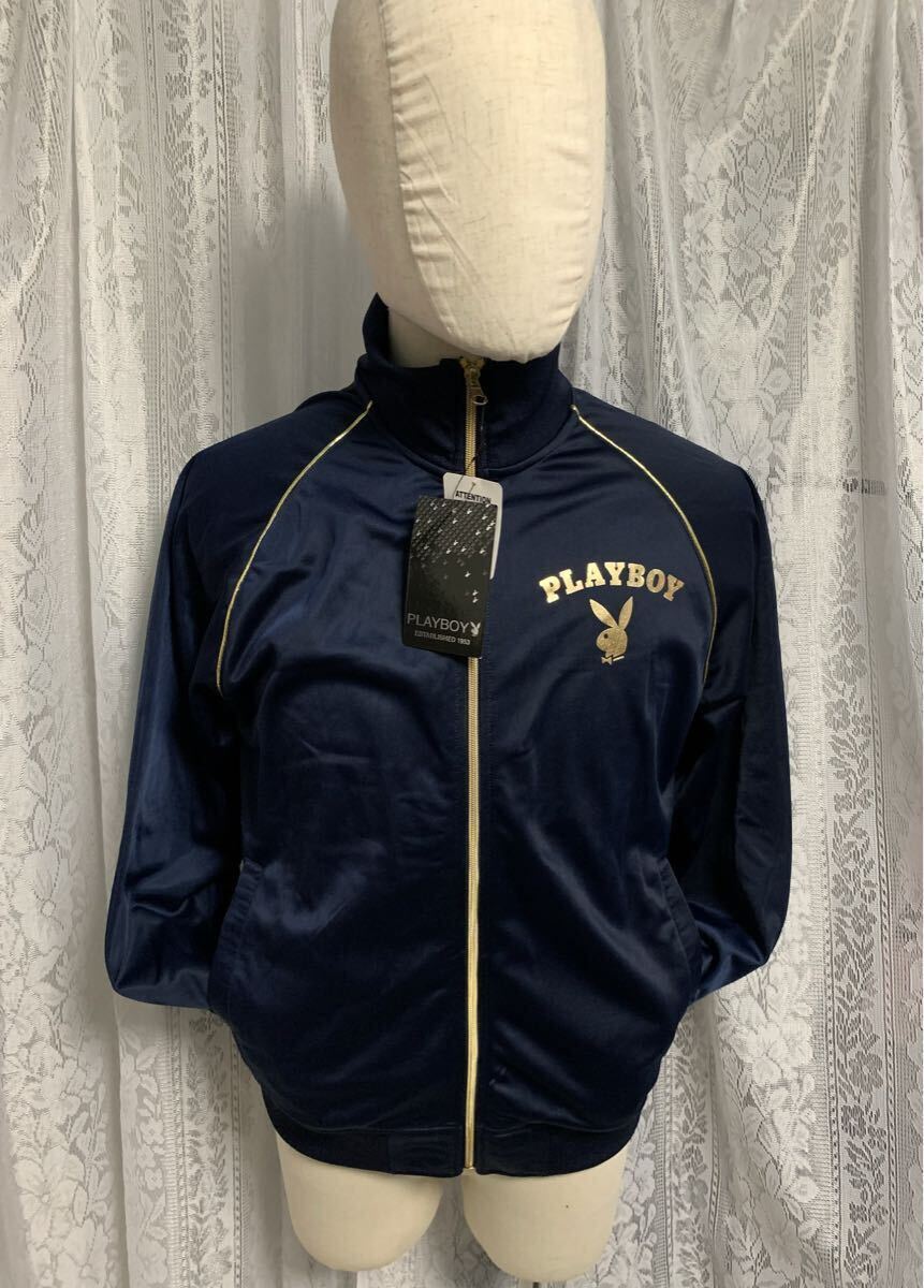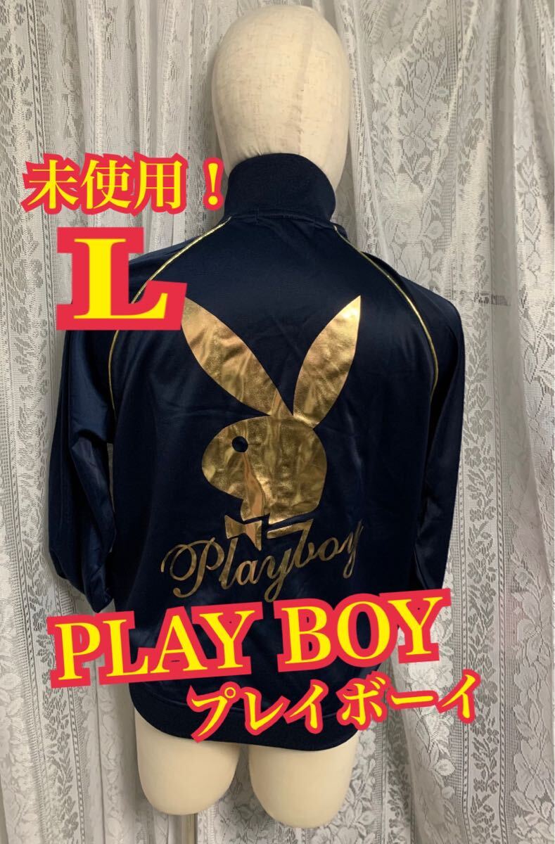 未使用!PLAY BOY プレイボーイ 長袖 ジャージ プリント デカロゴ ネイビー Lサイズ