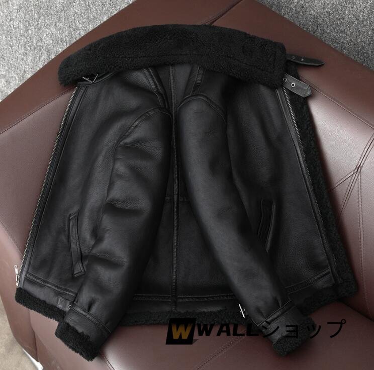 秋冬新品 暖かい 本革ジャケットB3フライトジャケット  メンズ ムートン ウール 革ジャン 本革コート ☆2色/S~5XL選択