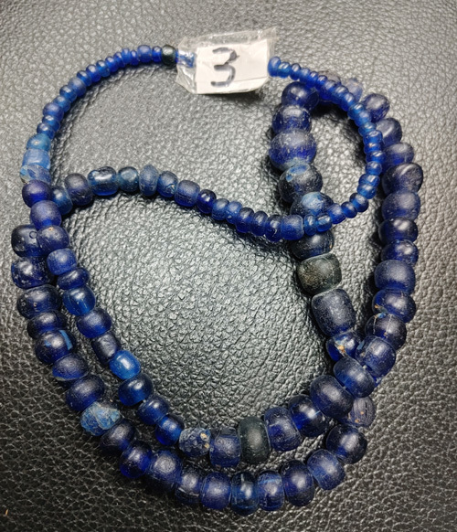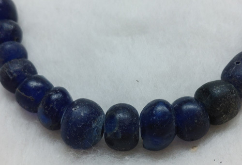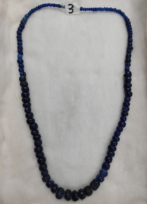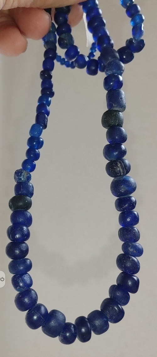 丸みある特に大きな瑠璃ガラス玉等で組まれた首飾り 連です。