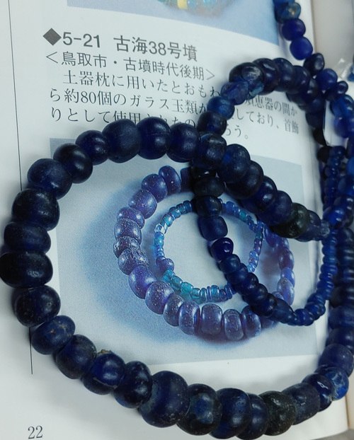 Product name: 古墳期 伝桜井市出土 微細ガラス玉から丸みある 特に大きな瑠璃色や靑色ガラス玉等で組まれた首飾り 倭玉 古墳玉連 ③ 検 翡翠勾玉縄文