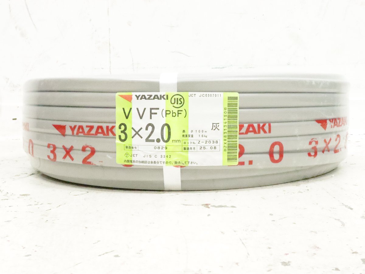 ■未使用品■ YAZAKI 矢崎 ヤザキ VVF (PbF) 3×2.0mm 100m 電線 配電用品 工具 ケーブル 製造年 25年 No.829