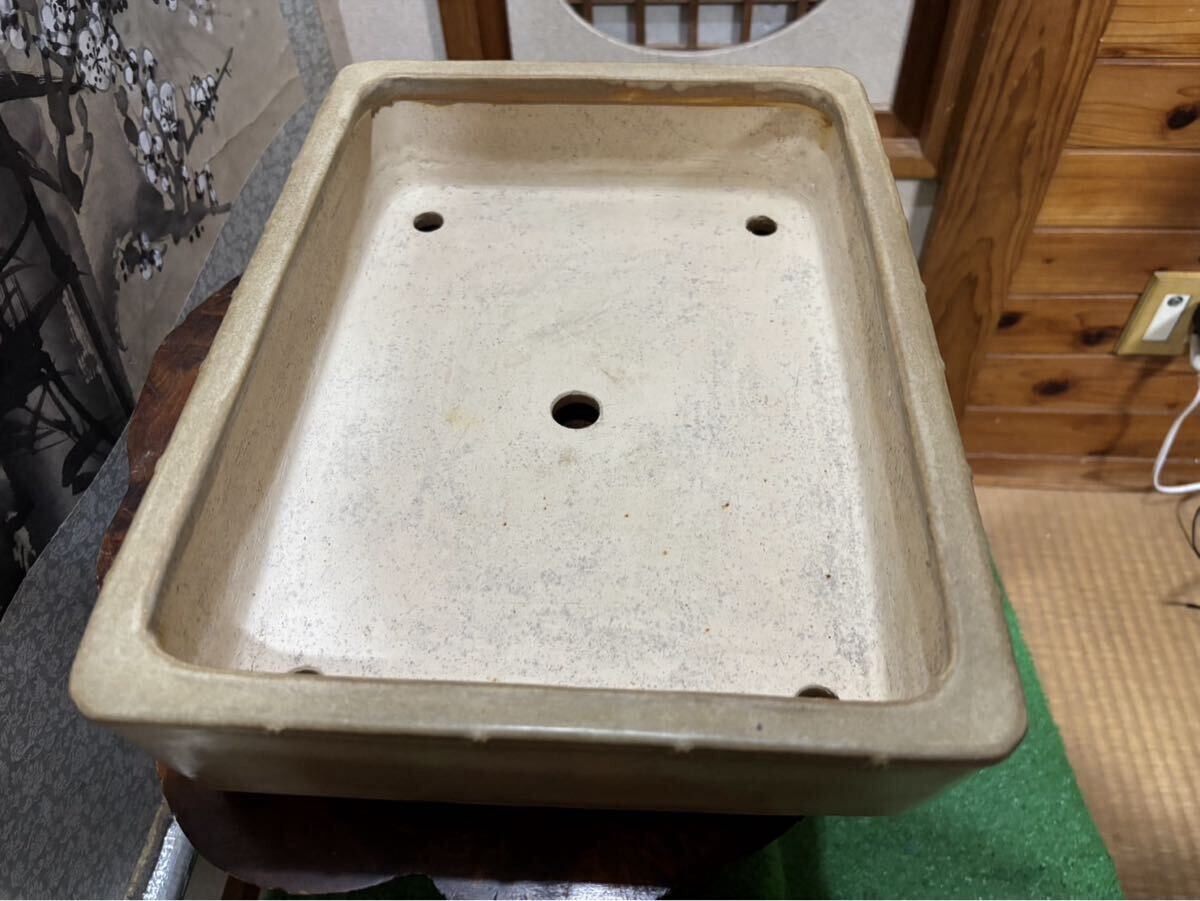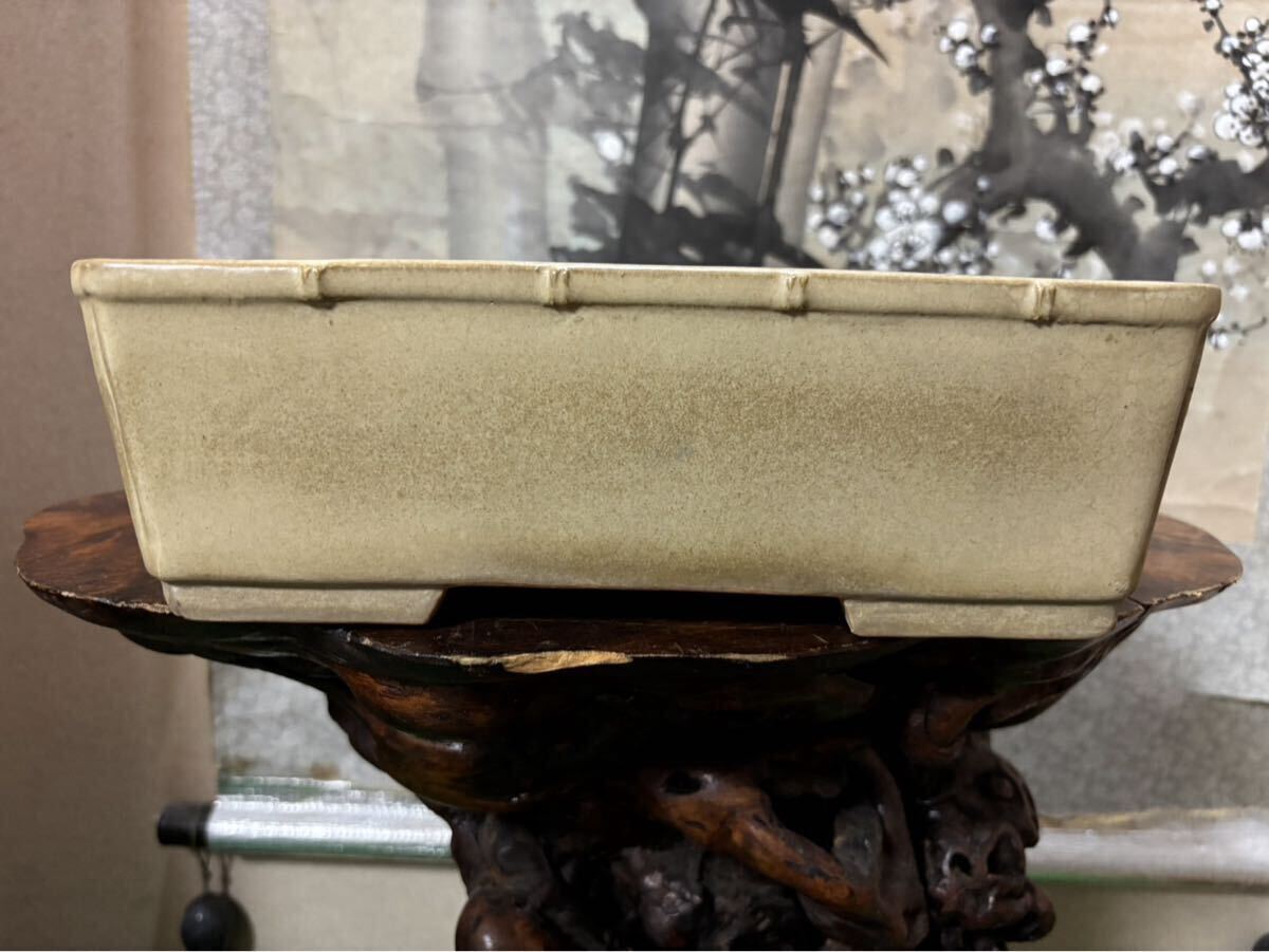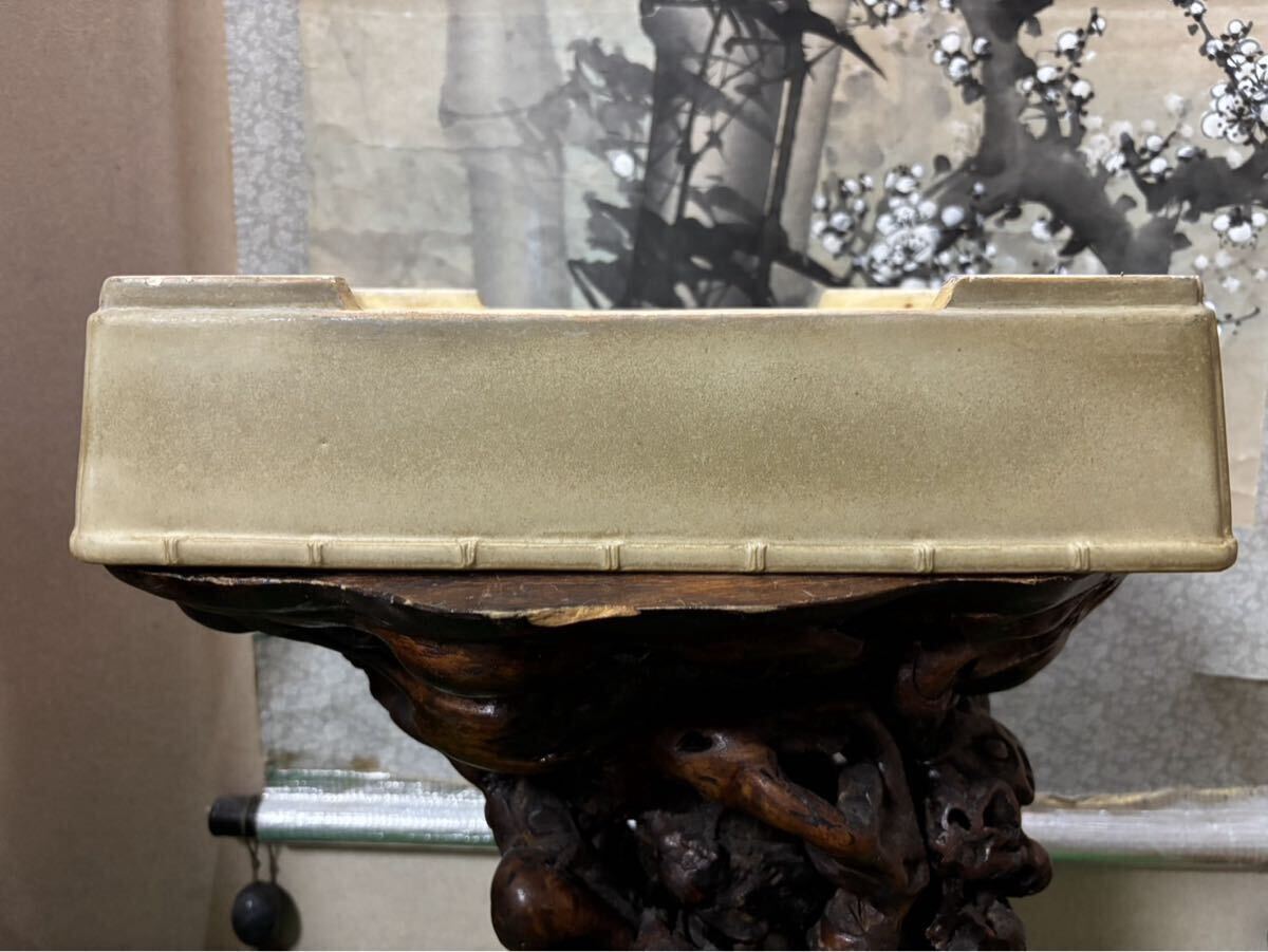 Product name: 【鴻陽】白釉窯変竹節縁切足長方鉢 巾372㎜ 使い込まれています 全国送料一律1000円