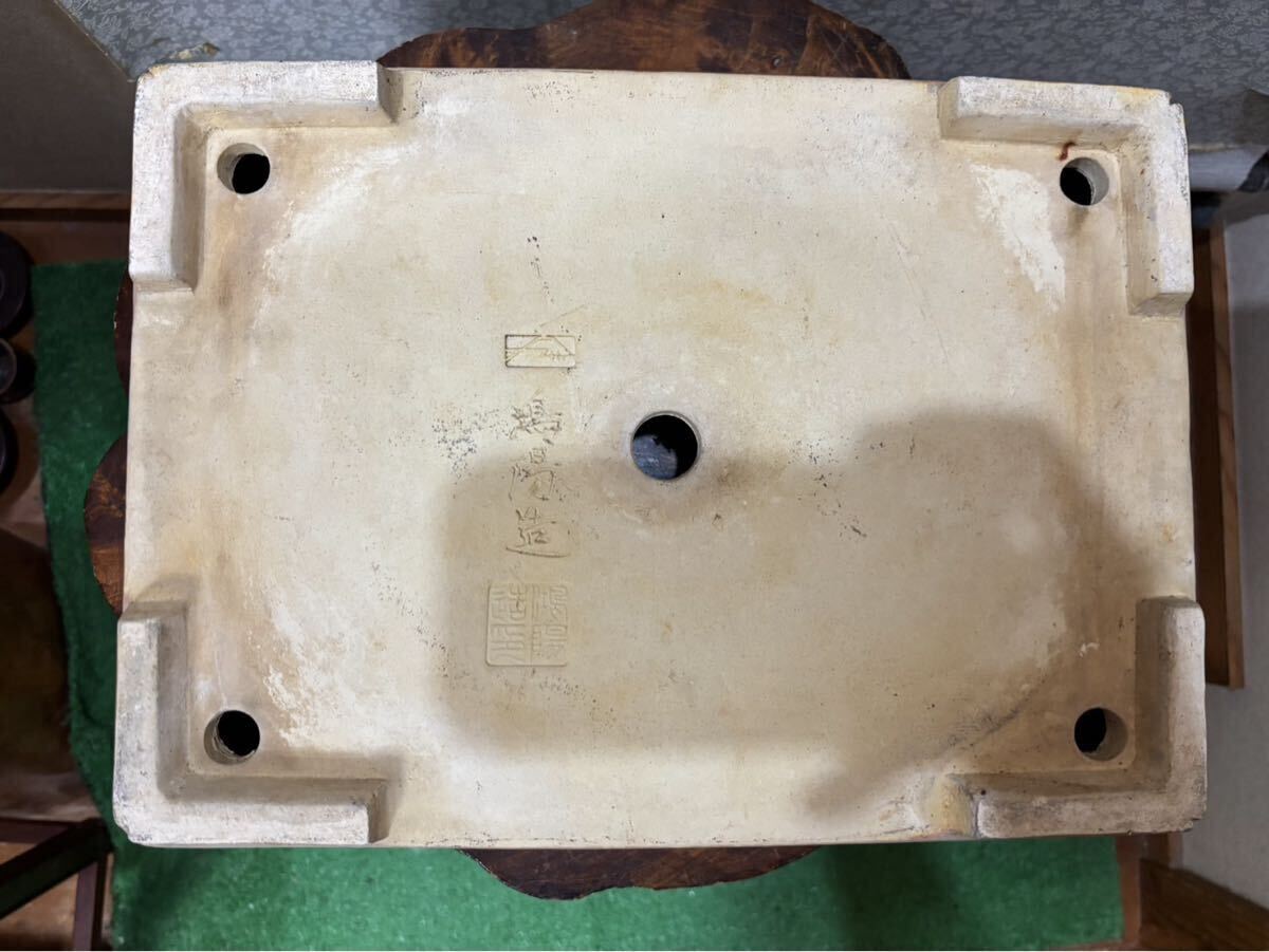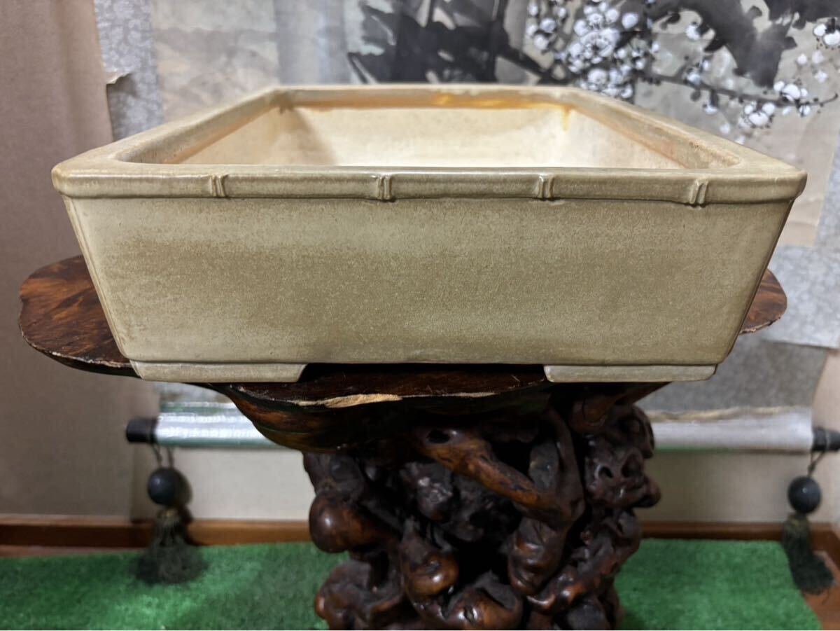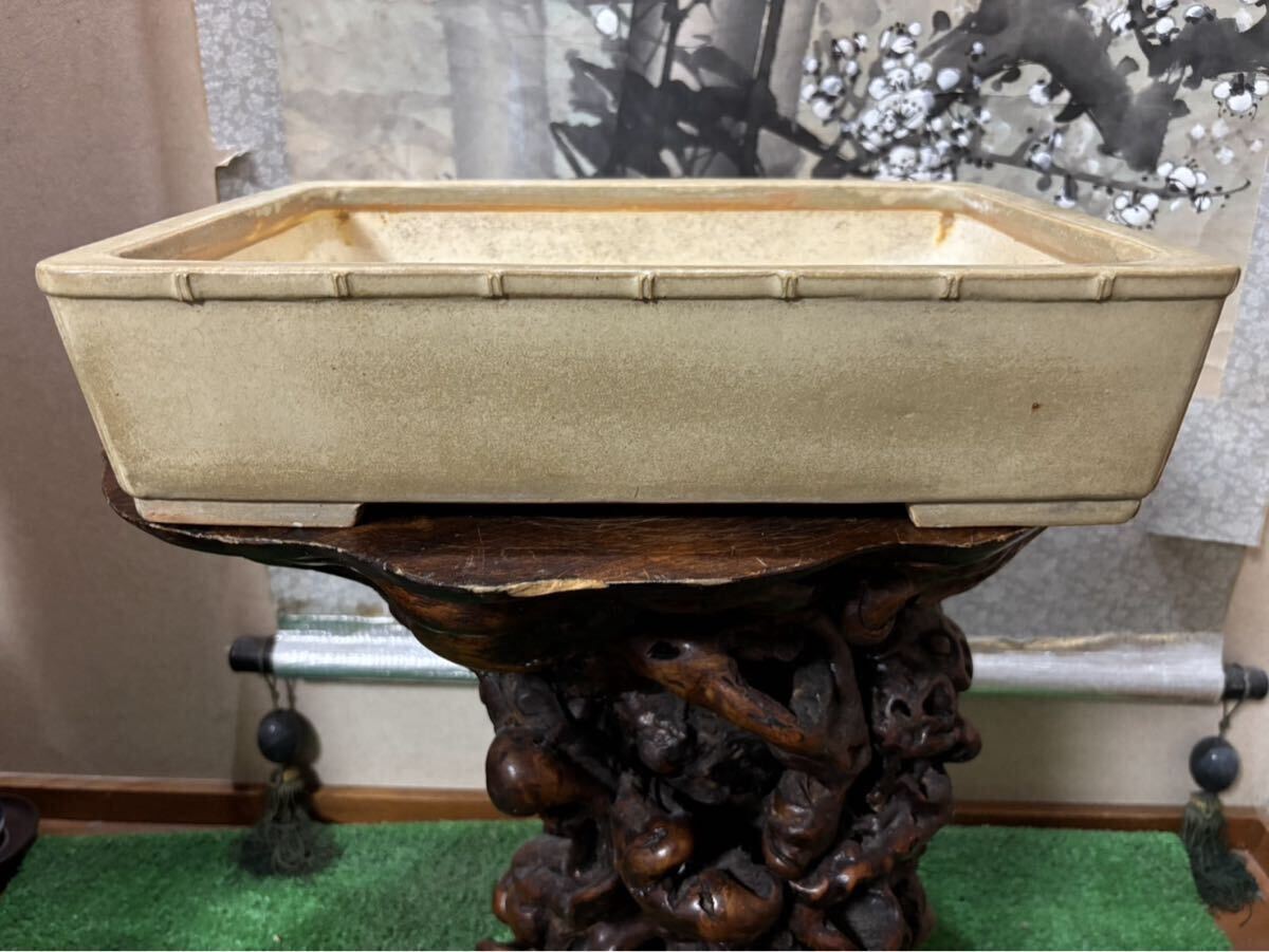 Product name: 【鴻陽】白釉窯変竹節縁切足長方鉢 巾372㎜ 使い込まれています 全国送料一律1000円