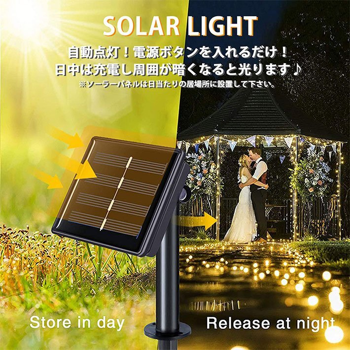 Product name: 【電気代0円】LED ソーラーライト 太陽電池 屋外 防水 照明 イルミネーション 32m 300灯 ワイヤーライト 7987676 暖色 新品 1円 スタート