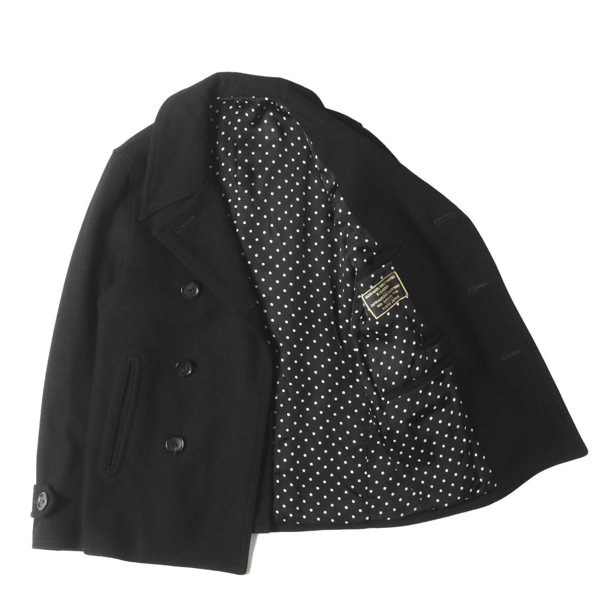 裏地をドット柄であしらったメルトンウール素材のPコートになります。