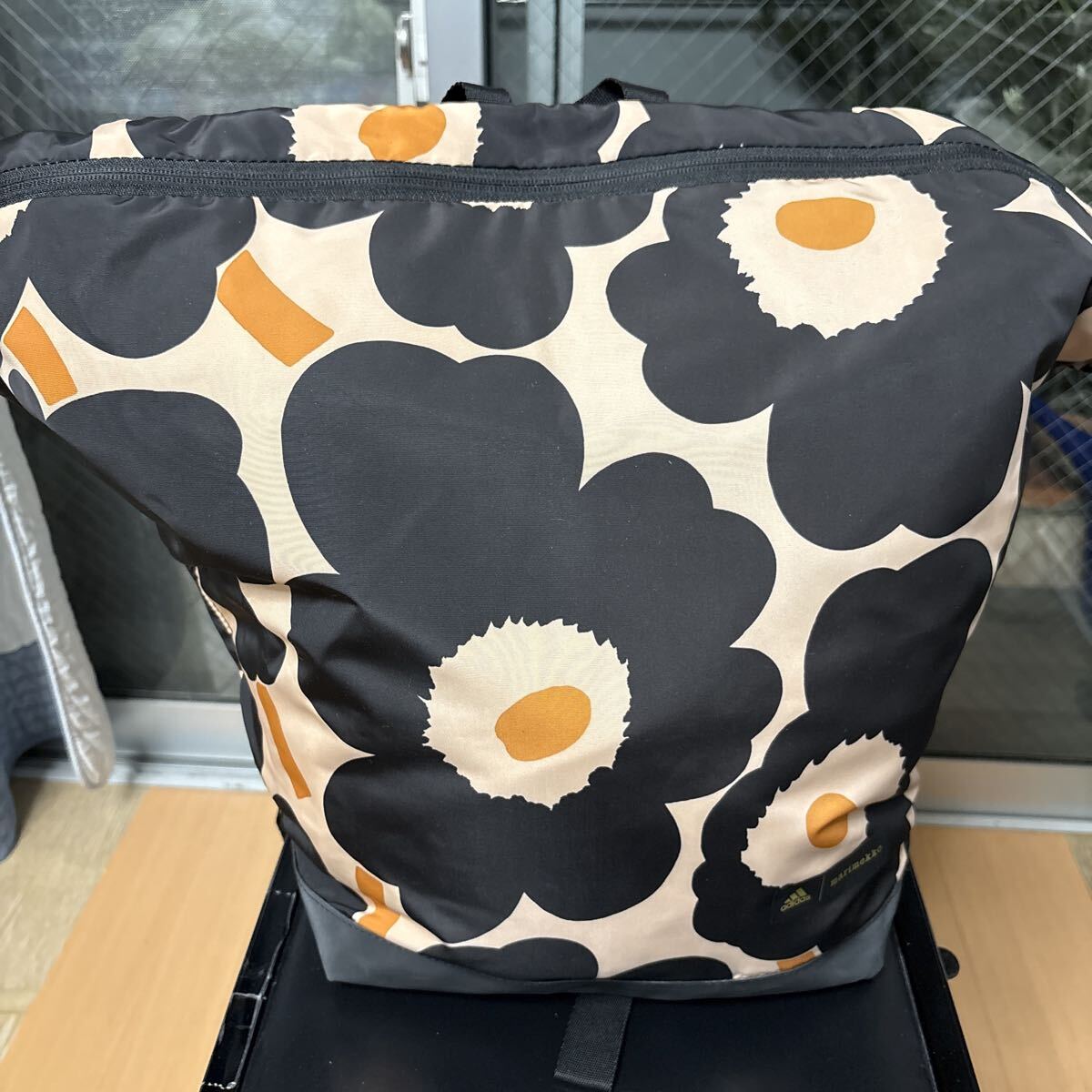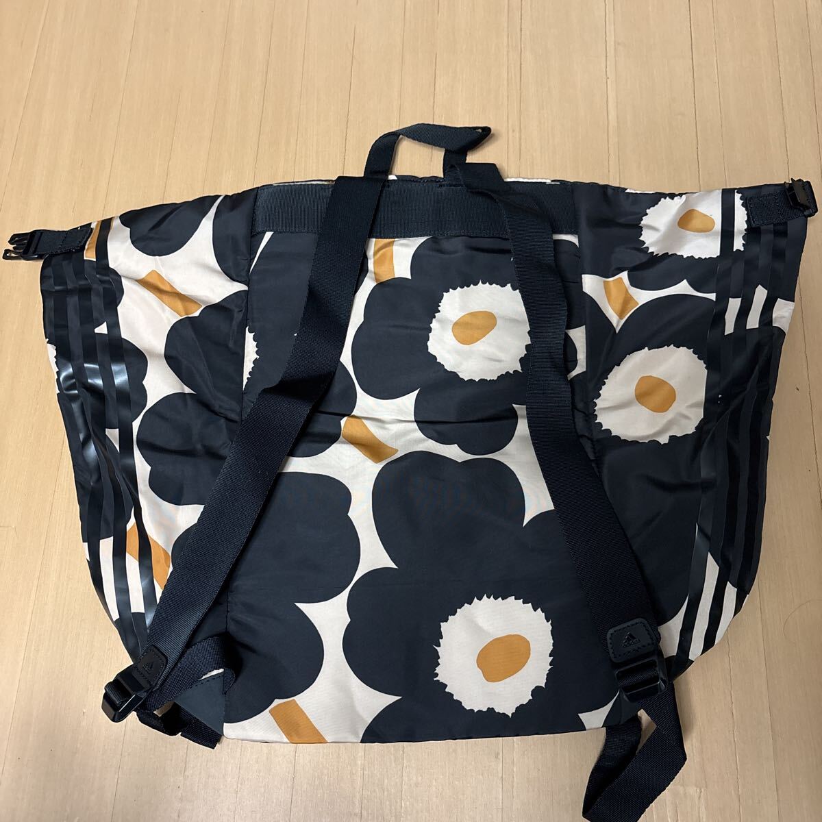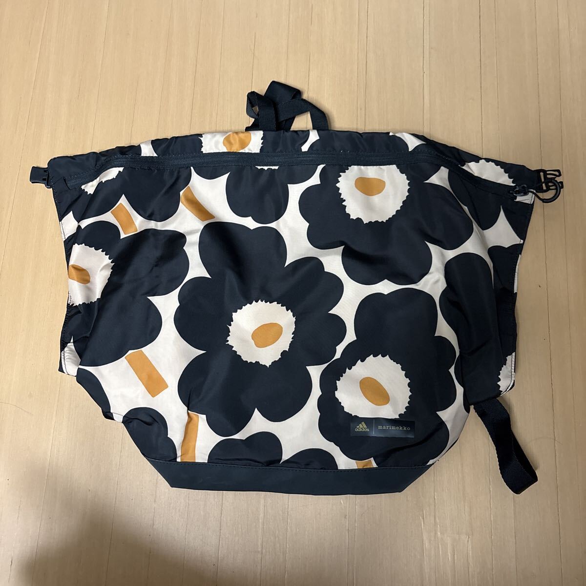 アディダス マリメッコのリュックになります。何度か使用しました。たたんでしまっていました。スポーツジムに行くのに便利そうと買いましたがジムに通っていません。中に仕切りが有るので荷物が迷わず使えると思います。沢山入りますし、少ない時はコンパクトにフックを留めるとまた可愛かたちになります。旅行等に軽くて沢山入るので便利かと思います。底26×19センチ、高さ48センチ。ファスナー60センチ。中にファスナーポケットと他3つのポケットがあります。とても可愛いいウニッコのリュックです。綺麗ではありますが何度か使用しています。保管臭保管皺等細かい事が気にならない方にお願い致します。落札後24時間以内のご連絡3日以内のお支払いが可能な方、到着連絡を頂ける方にお願い致します。以上ご理解の上ノークレームノーリターンでお願い致します。