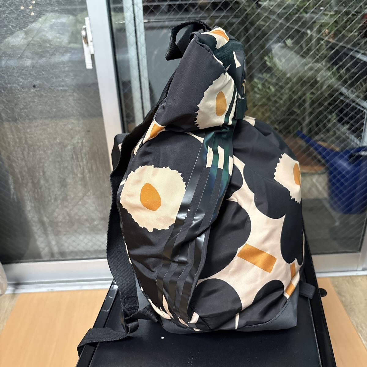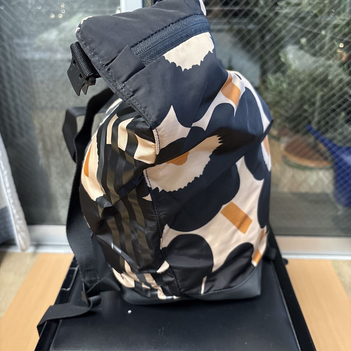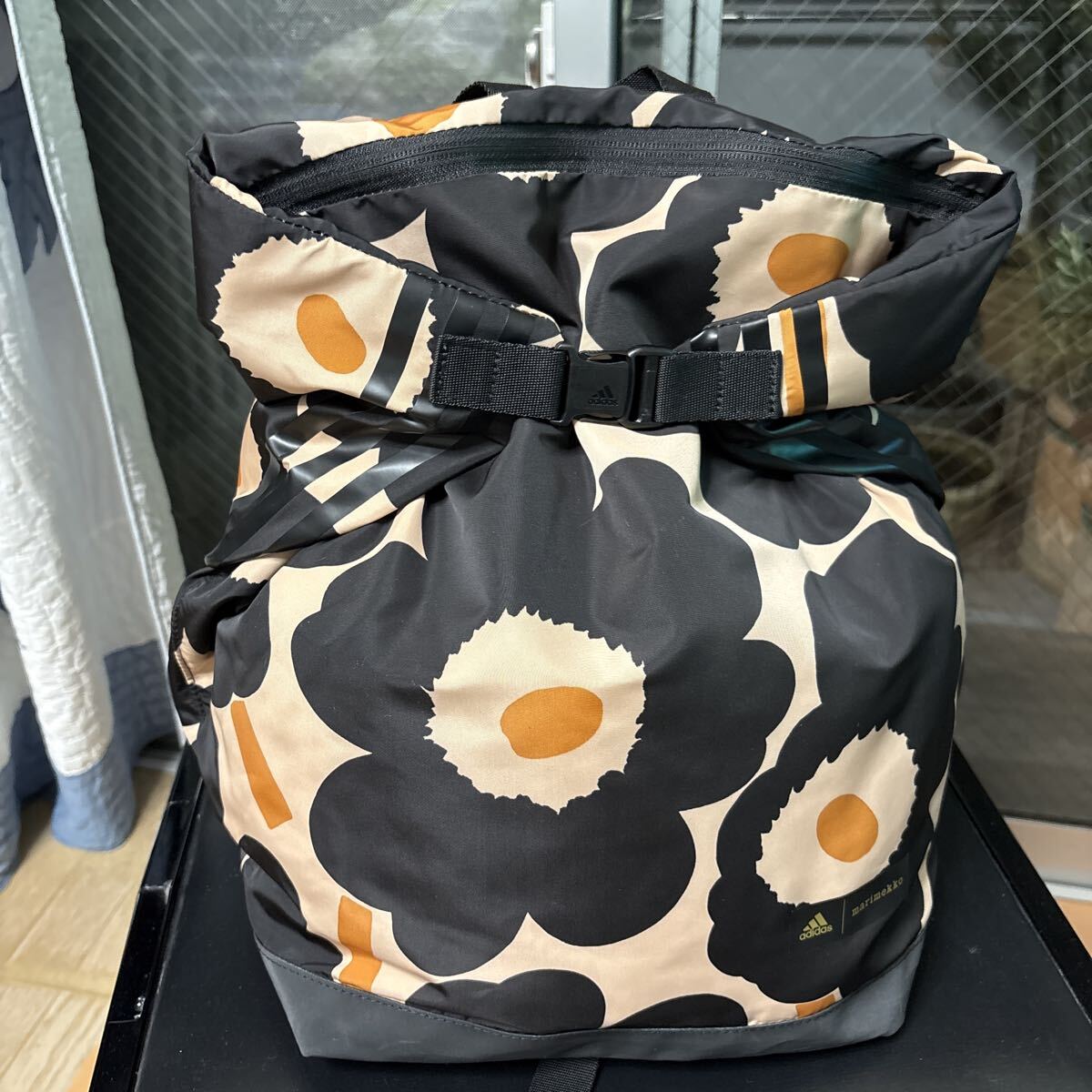 アディダス マリメッコのリュックになります。何度か使用しました。たたんでしまっていました。スポーツジムに行くのに便利そうと買いましたがジムに通っていません。中に仕切りが有るので荷物が迷わず使えると思います。沢山入りますし、少ない時はコンパクトにフックを留めるとまた可愛かたちになります。旅行等に軽くて沢山入るので便利かと思います。底26×19センチ、高さ48センチ。ファスナー60センチ。中にファスナーポケットと他3つのポケットがあります。とても可愛いいウニッコのリュックです。綺麗ではありますが何度か使用しています。保管臭保管皺等細かい事が気にならない方にお願い致します。落札後24時間以内のご連絡3日以内のお支払いが可能な方、到着連絡を頂ける方にお願い致します。以上ご理解の上ノークレームノーリターンでお願い致します。