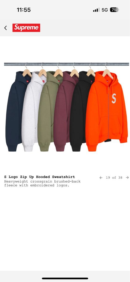 [商品名]Supreme S Logo Zip Up Hooded Sweatshirt