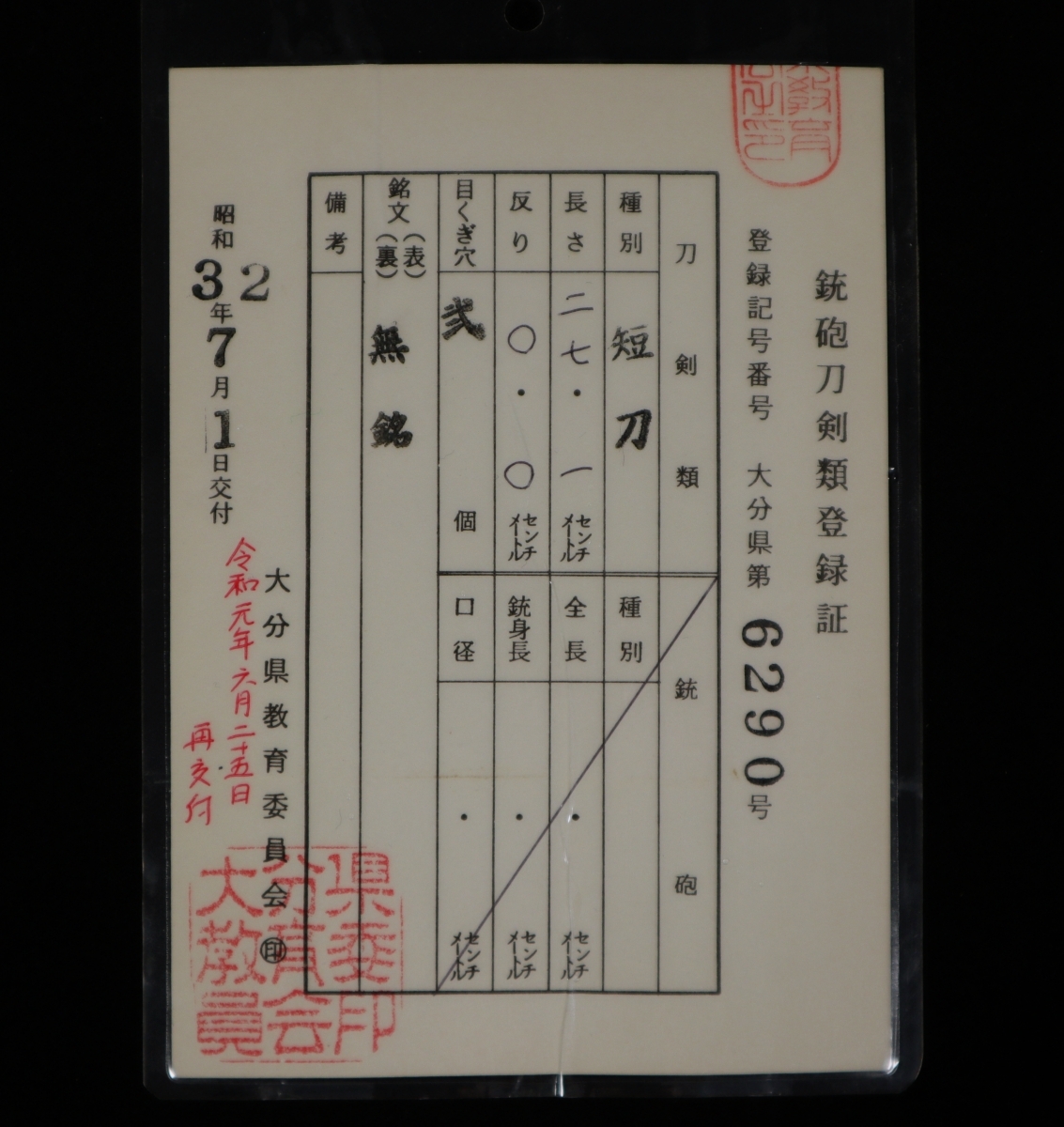 日本刀剣保存協会の保存刀剣鑑定書にて