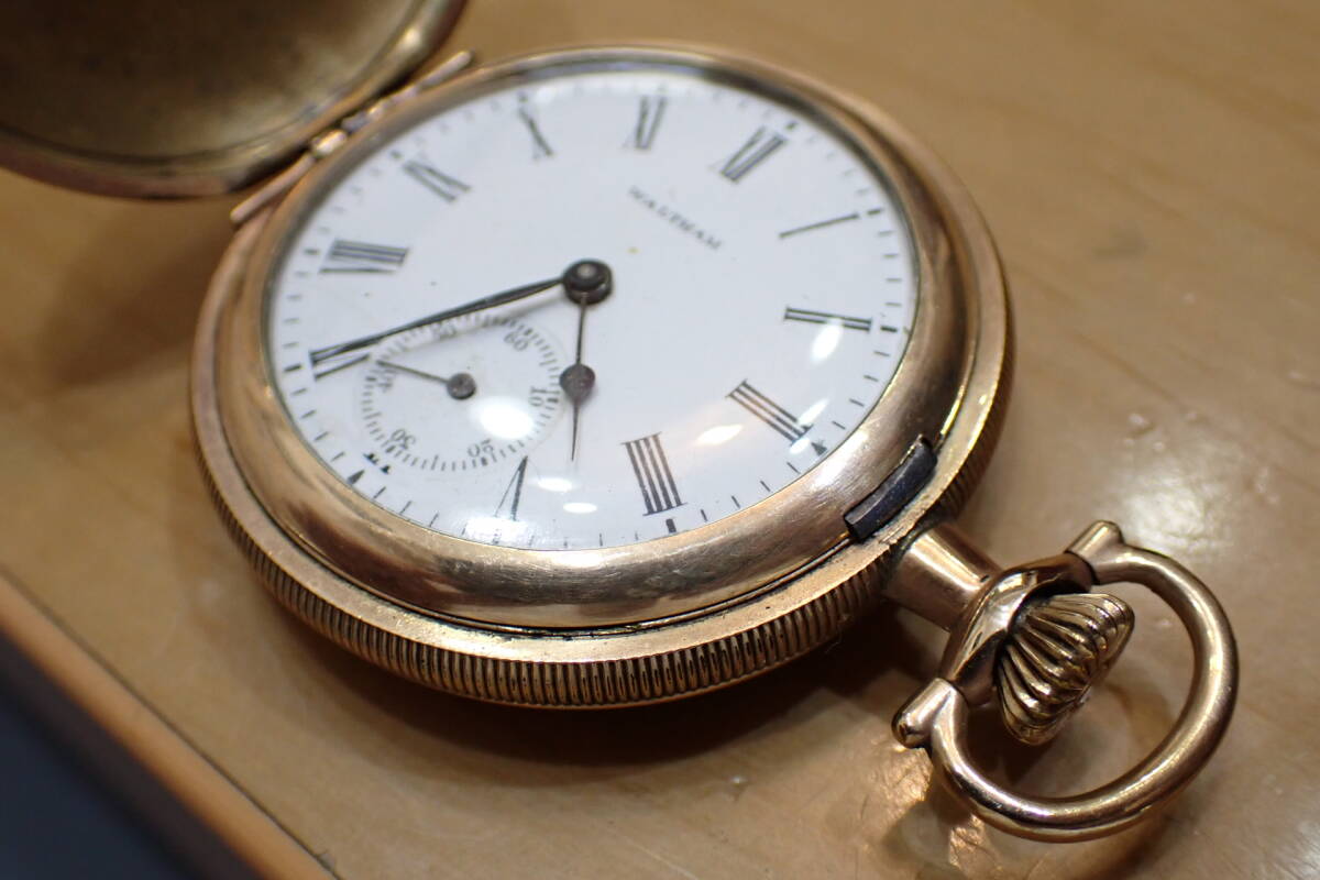 時計店在庫 Waltham/ウォルサム ◆ 金ムーブ フルハンターケース 彫刻入り 手巻き懐中時計