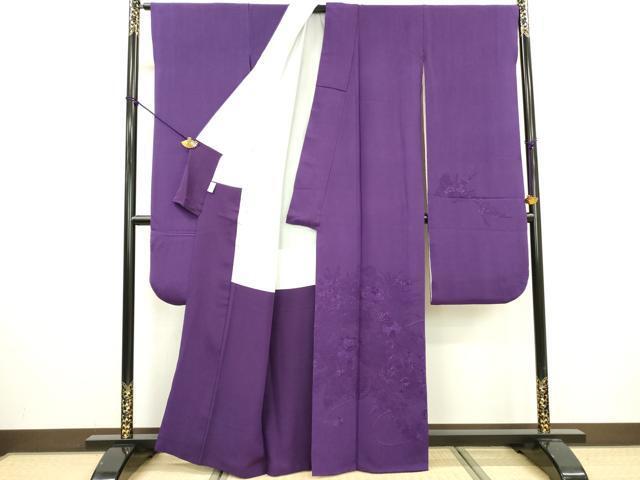 Product name: 平和屋着物▼中国三大刺繍 スワトウ刺繍 汕頭刺繍 総刺繍 振袖 花車文 色無地 葡萄色 正絹 逸品 DAAX9355fe