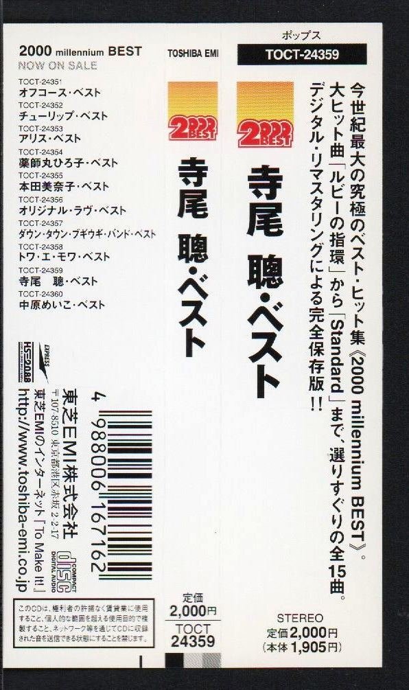 Product name: ■寺尾聰■ベスト・アルバム■「2000 BEST (ミレニアム)」■♪ルビーの指環/回転扉/SHADOW CITY♪■品番:TOCT-24359■2000/6/21発売■帯■