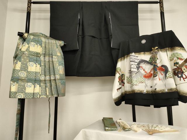 Product name: 平和屋着物[]七五三 男の子 5歳 祝着・羽織・行灯袴・小物セット 騎馬風景文 黒地 金彩 AAAU5374ja