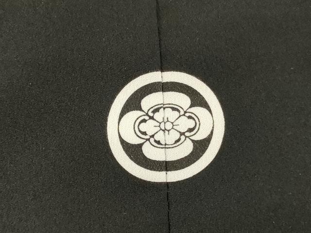 羽織【化繊・五つ紋】の状態は接写画像のように衿・両袖後に汚れがございますが