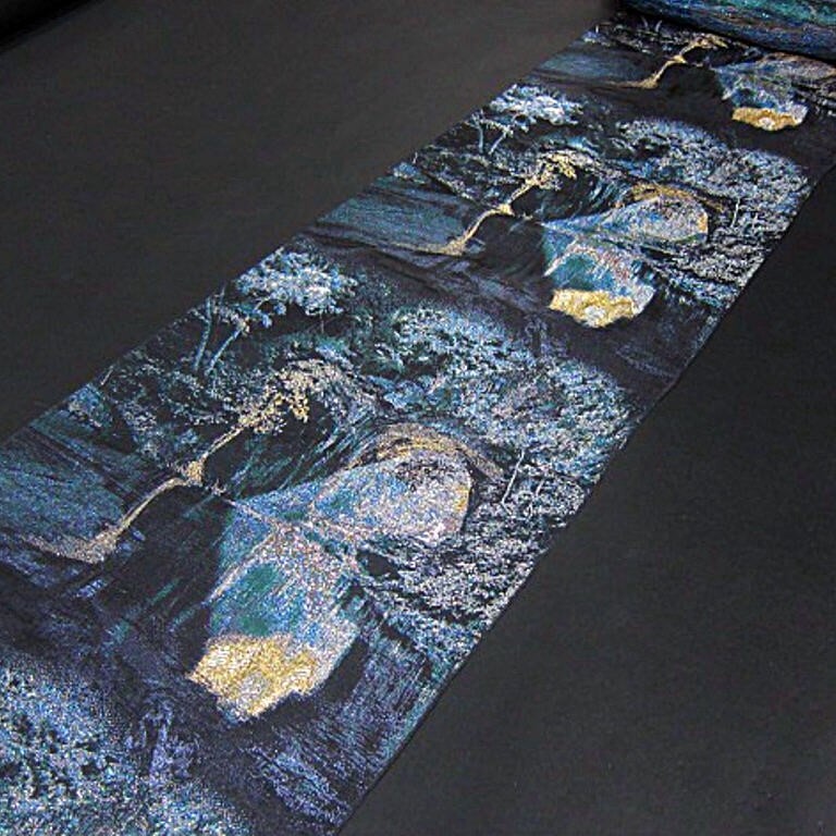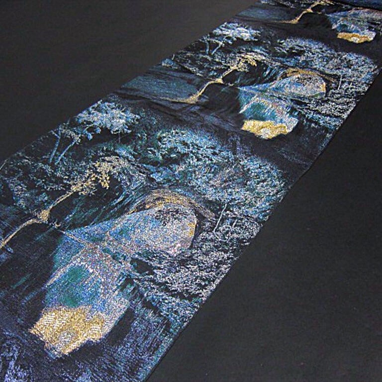 新品未仕立 西陣織六通柄高級丸巻袋帯 幻想的 美しい風景 濃溝の滝・亀岩の洞窟