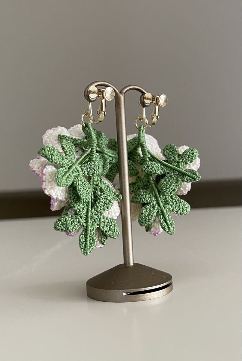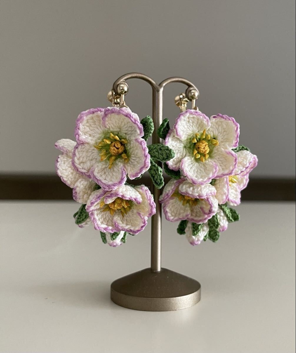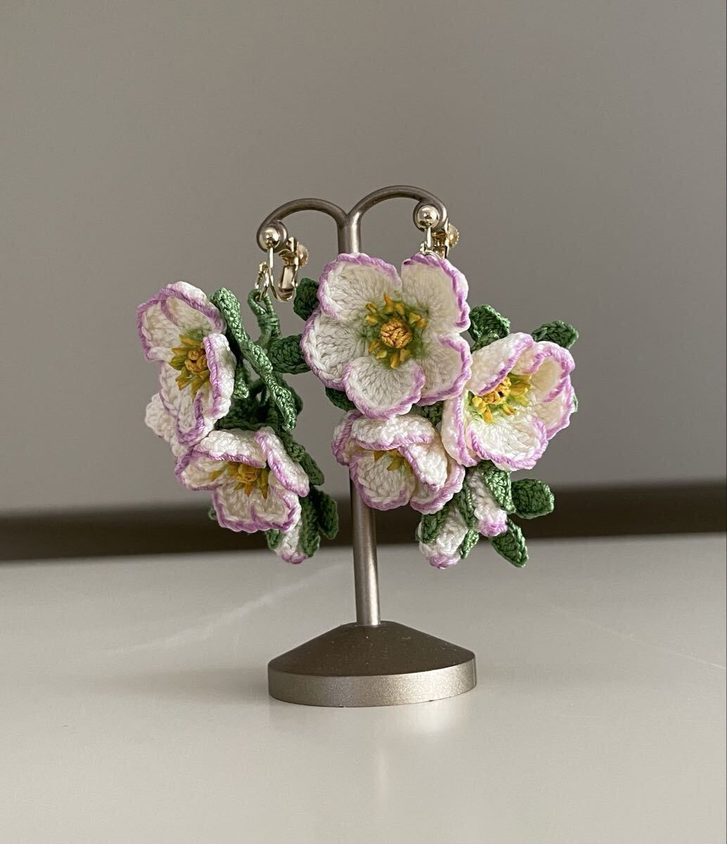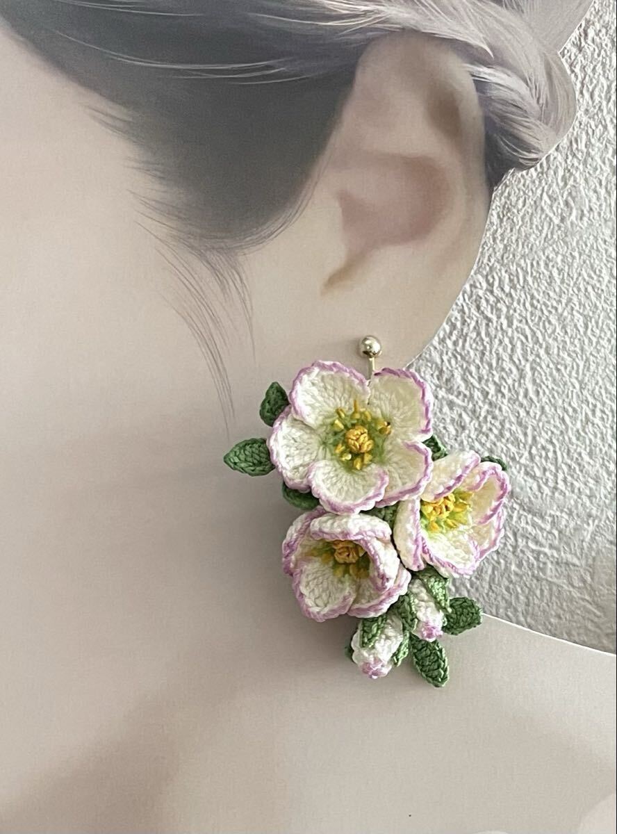 こちらはレース糸で編んだお花のイヤリングです。