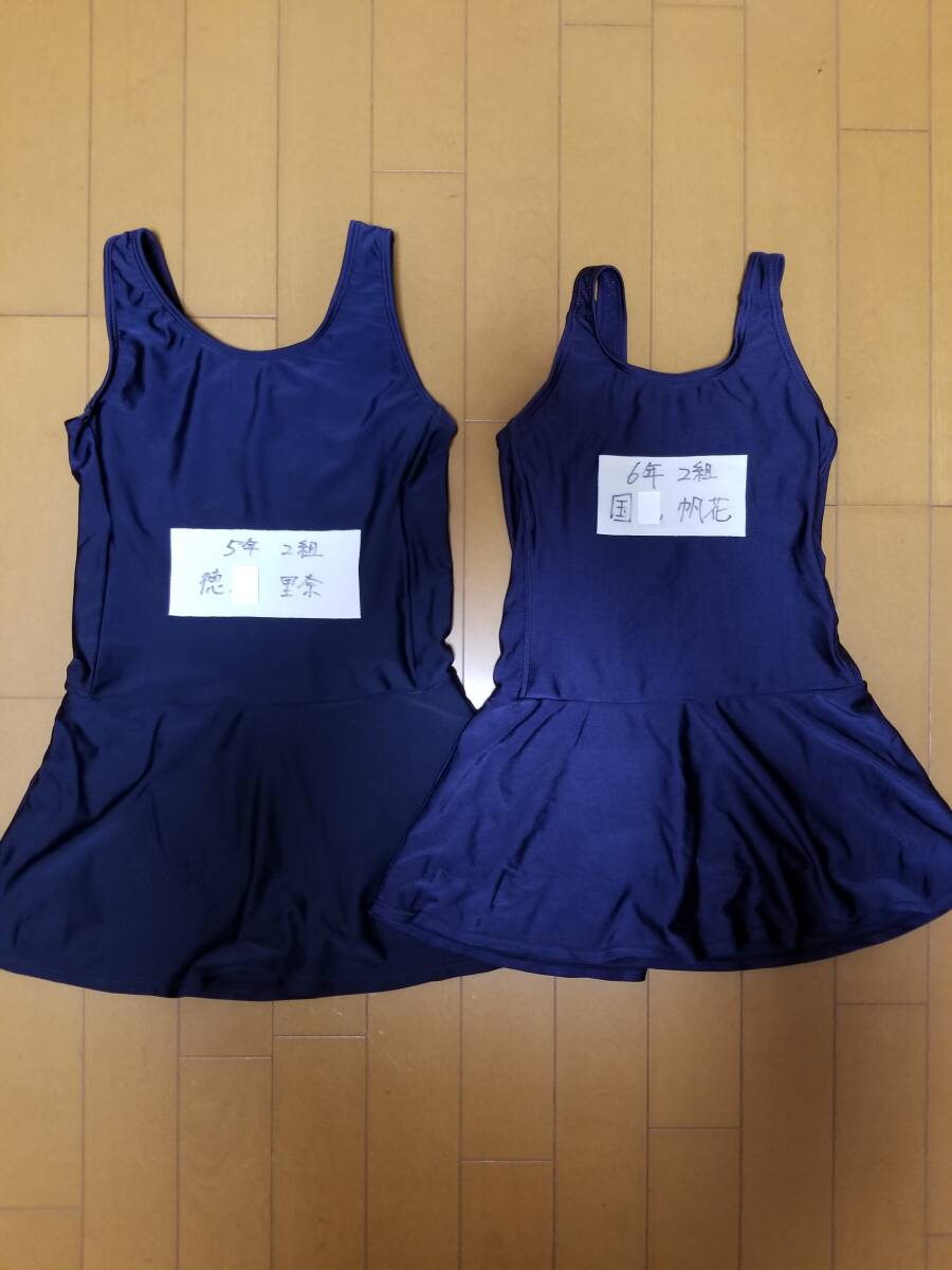 ナンバーテン 150、160サイズ 紺系光沢スカート&ワンピース水着2枚セット 中古