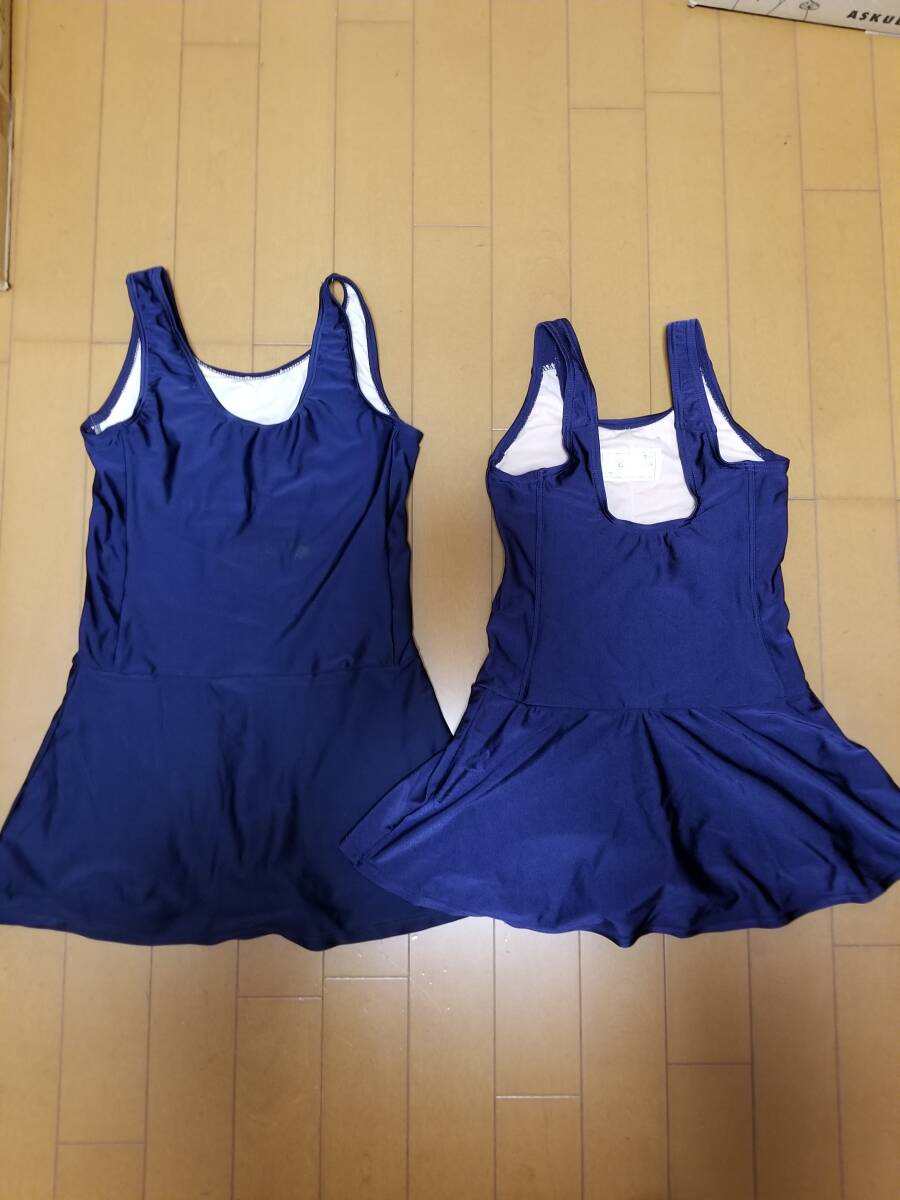 Product name: ナンバーテン 150、160サイズ 紺系光沢スカート&ワンピース水着2枚セット 中古