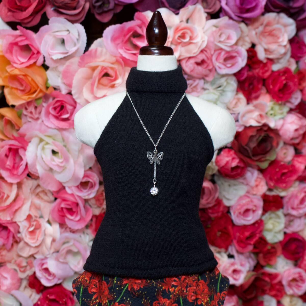 Product name: 40cmドール MDD ( L胸 もちあし OK ) SDM MSD 対応 * ブラック ニット トップス & 彼岸花 レッド 変形 スカート & ネックレス * 服 衣装