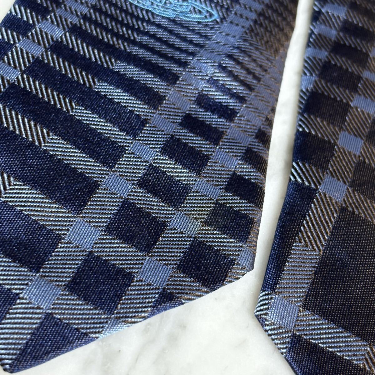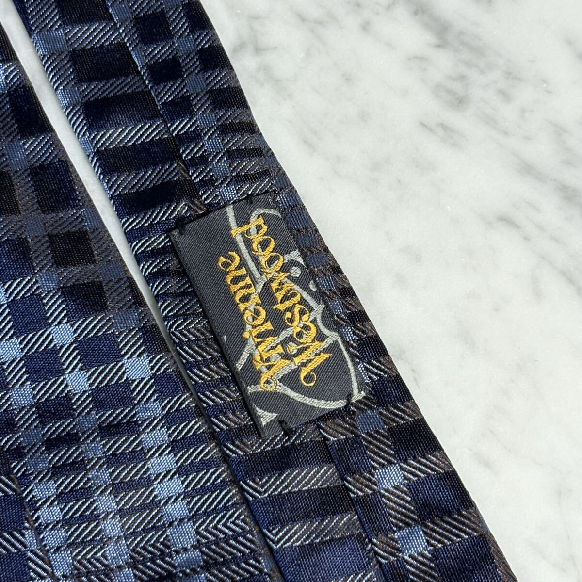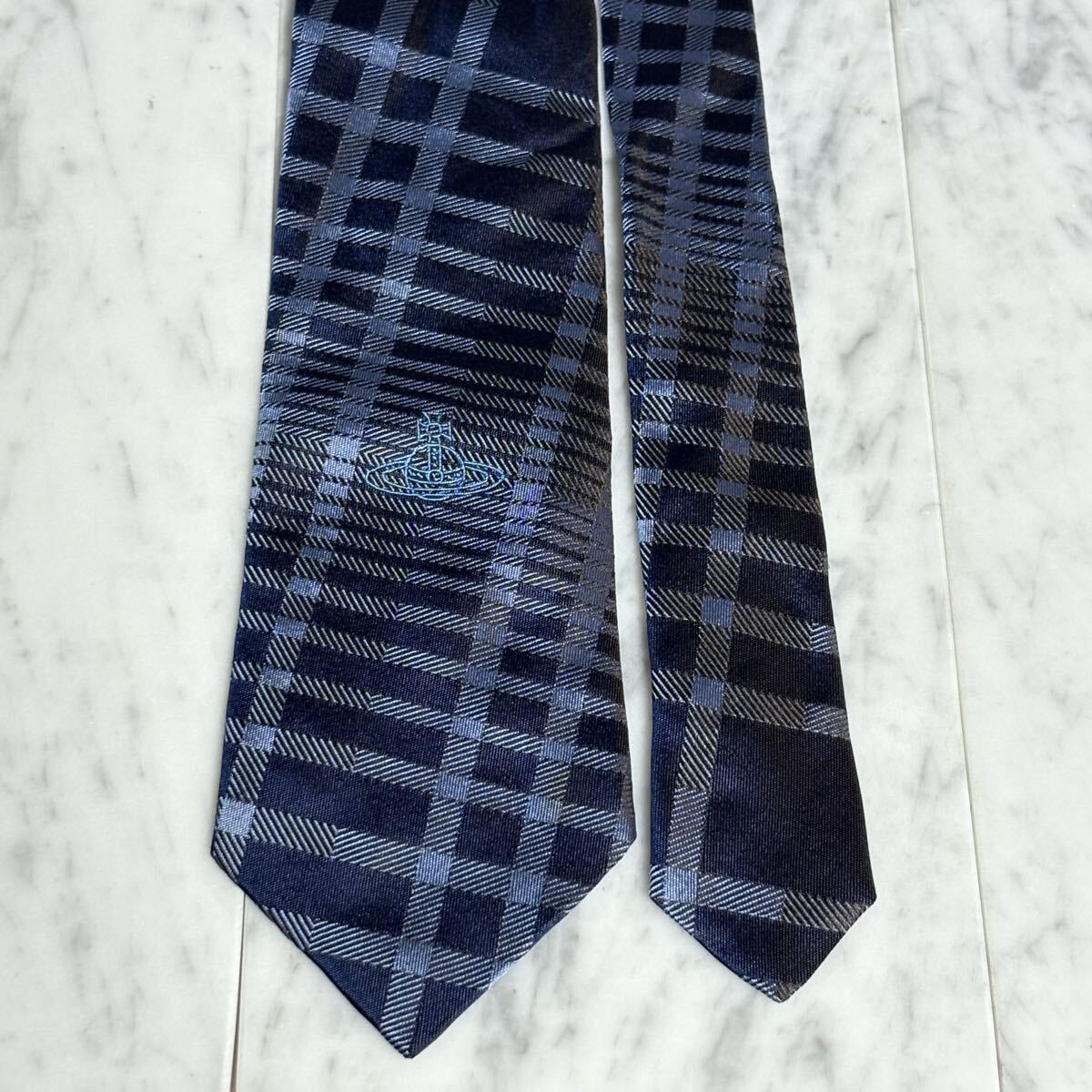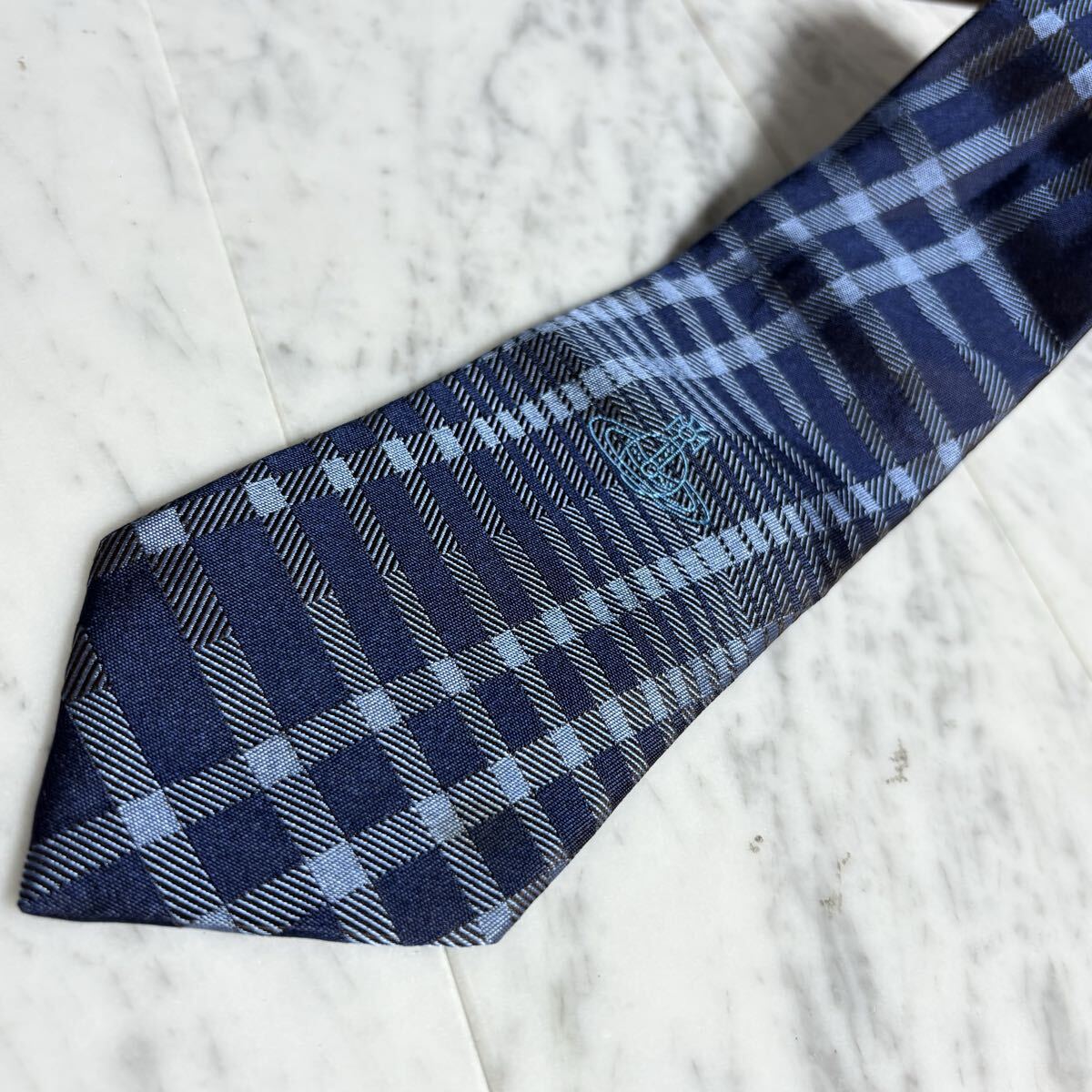 999円~ Vivienne Westwood ネクタイ チェック柄 ネイビー オーブ柄 (B15)