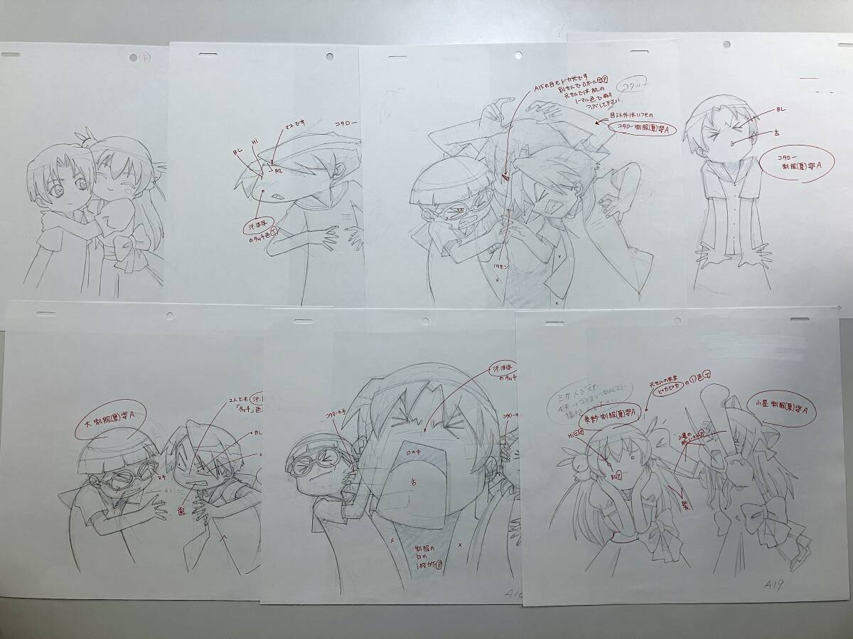 U ぴたテン 直筆 原画 7枚セット /アニメ 動画 セル画 レイアウト 原動画 生原画 肉筆 等/Anime Sketch Cel