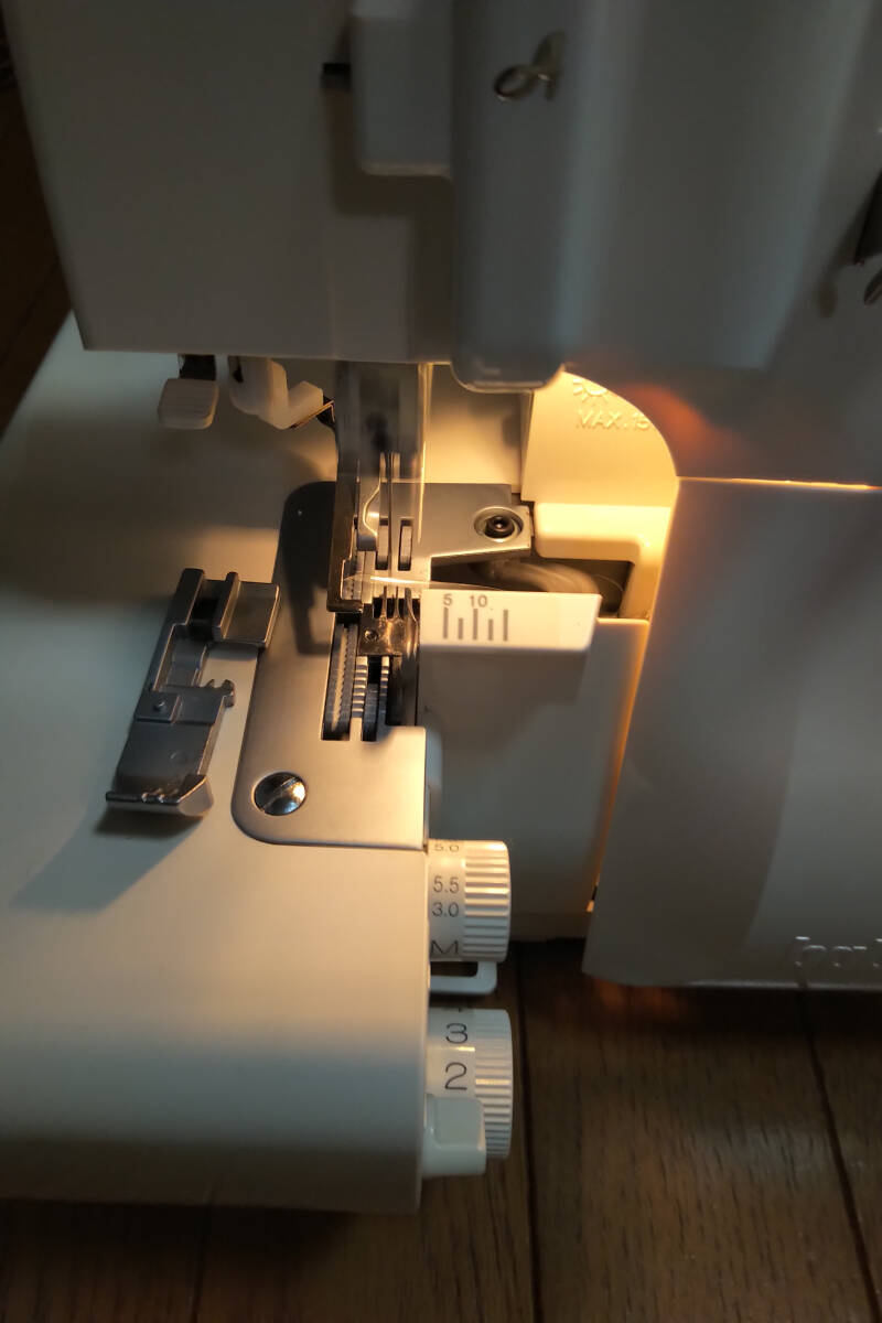 ケーブルを接続して、通電・手元のライトの点灯、ペダル押下による針部分の上下動作を確認しています。