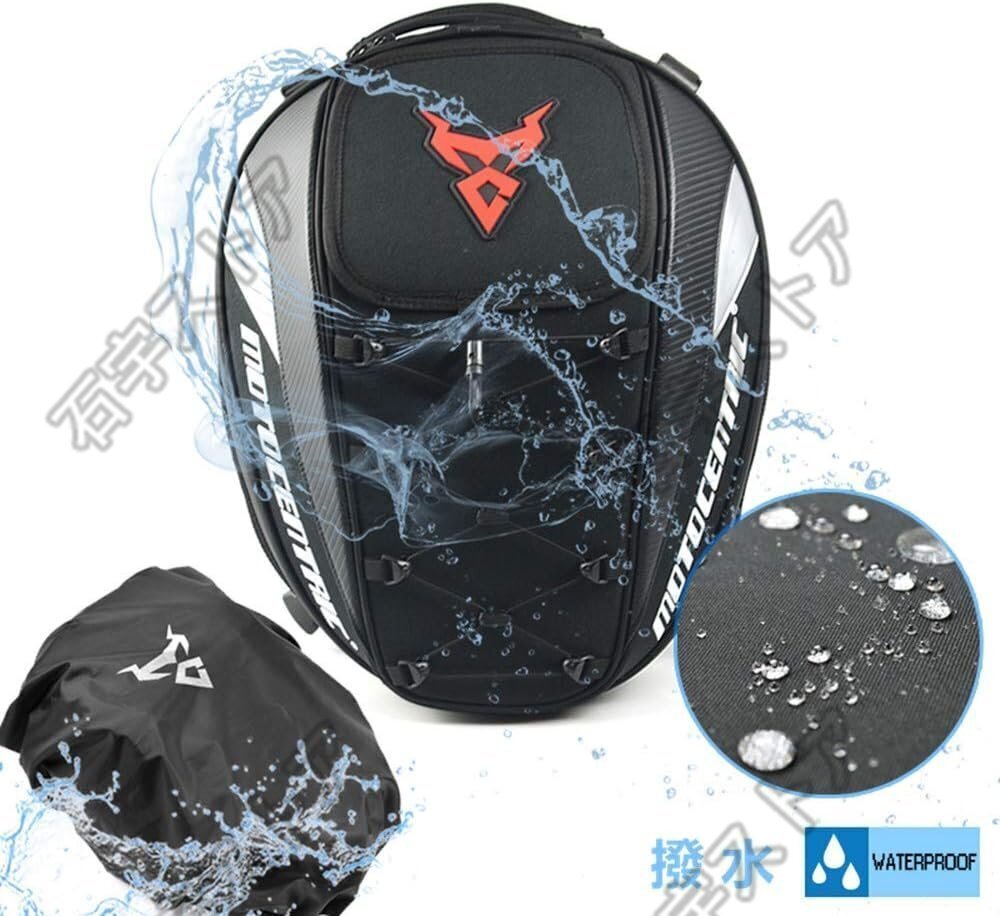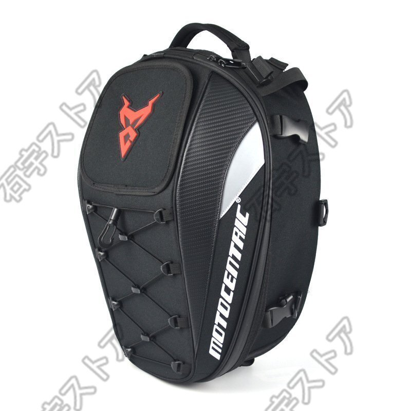 バイク用 シートバッグ 拡張機能 ヘルメットバッグ 汎用バッグ 撥水 耐久性 反射テープ/固定ベルト付き 収納 (ロゴ赤) shw224