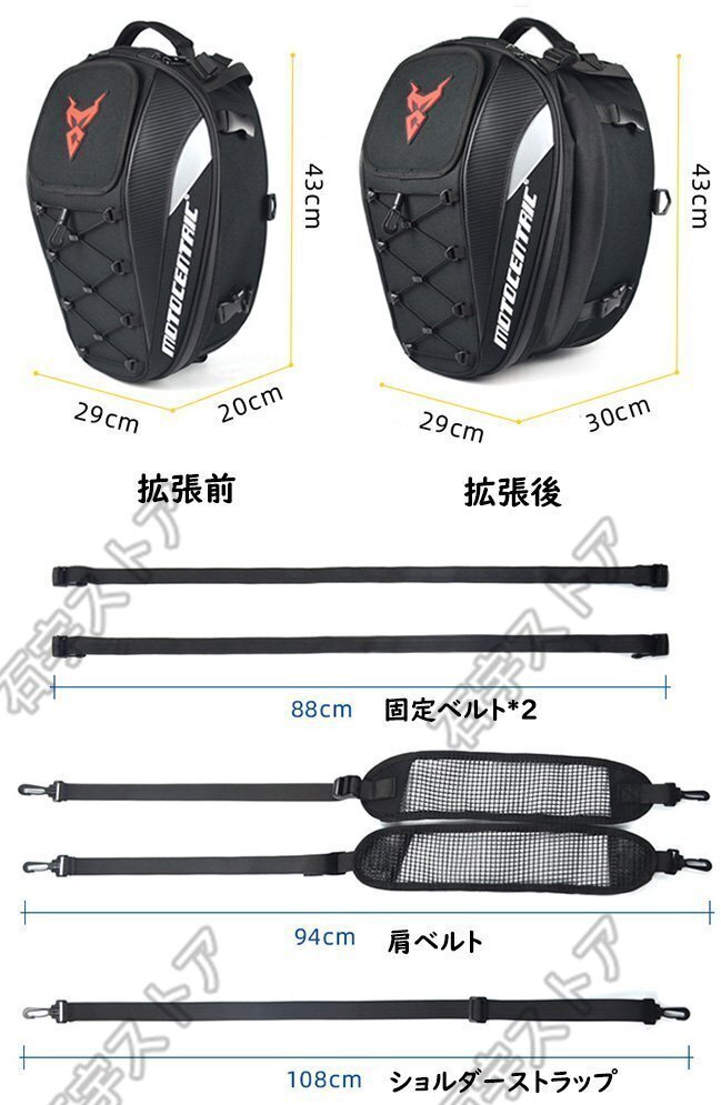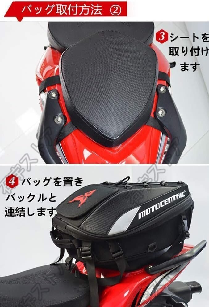 Product name: バイク用 シートバッグ 拡張機能 ヘルメットバッグ 汎用バッグ 撥水 耐久性 反射テープ/固定ベルト付き 収納 (ロゴ赤) shw224