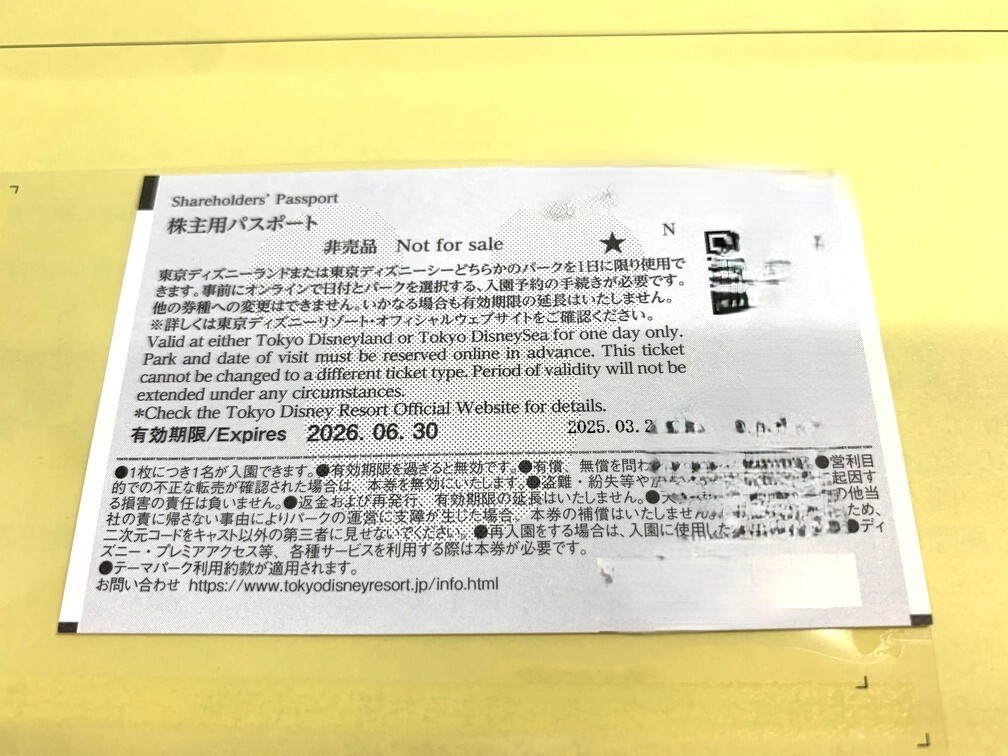 Product name: オリエンタルランド 株主優待券 株主パスポート 2026年6月30日まで 1枚 【未使用】 東京ディズニーリゾート AEN10988GI