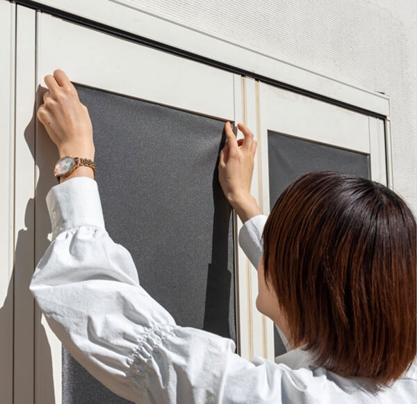 付属の専用両面テープを使って窓やアルミサッシに簡単に取り付けできます。