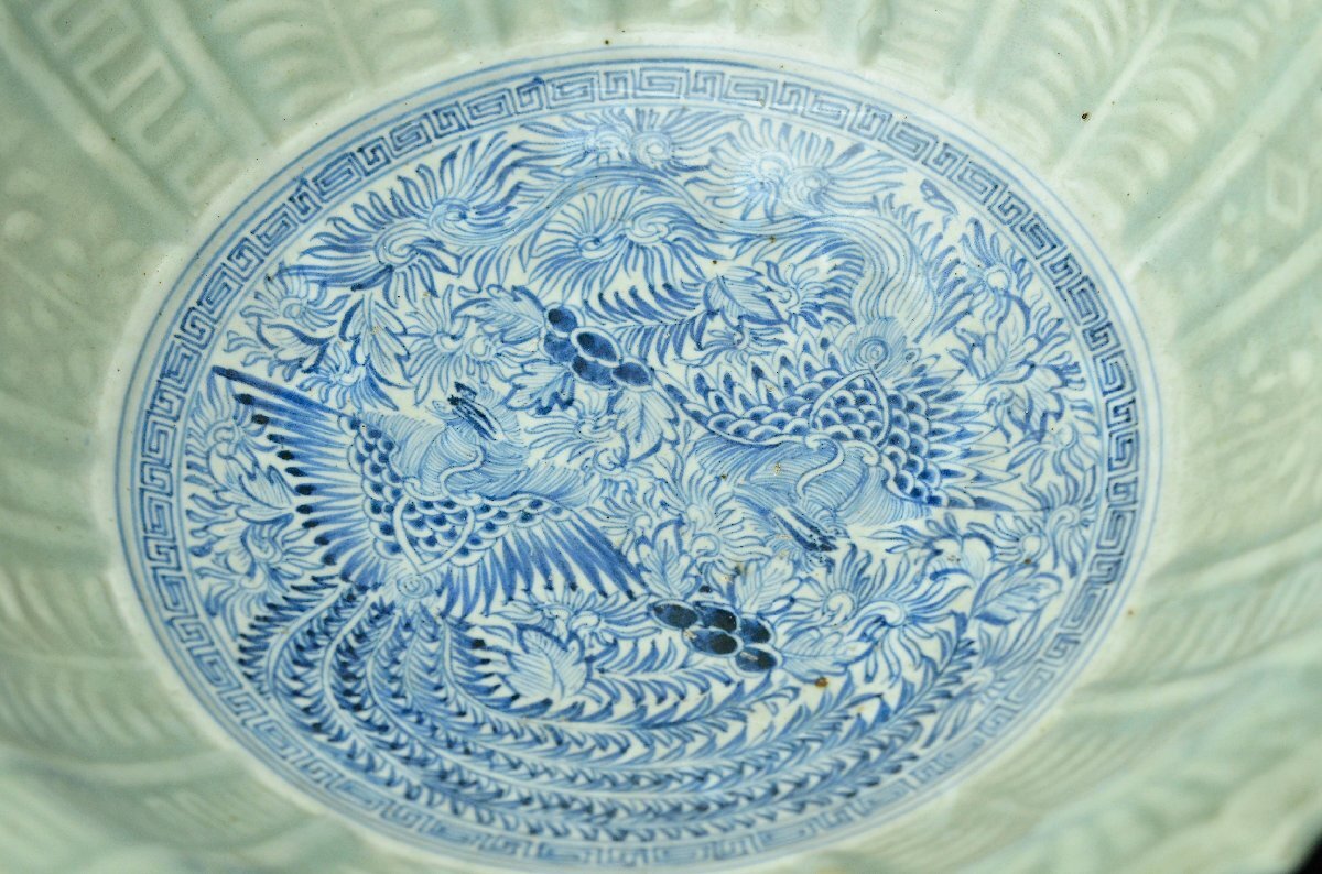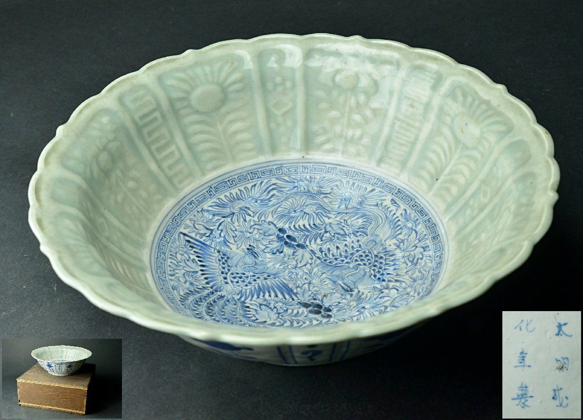 Product name: 【YB】江戸時代 古伊万里双鳥花草紋青磁大鉢・桐箱付属 ★日本古美術古玩骨董