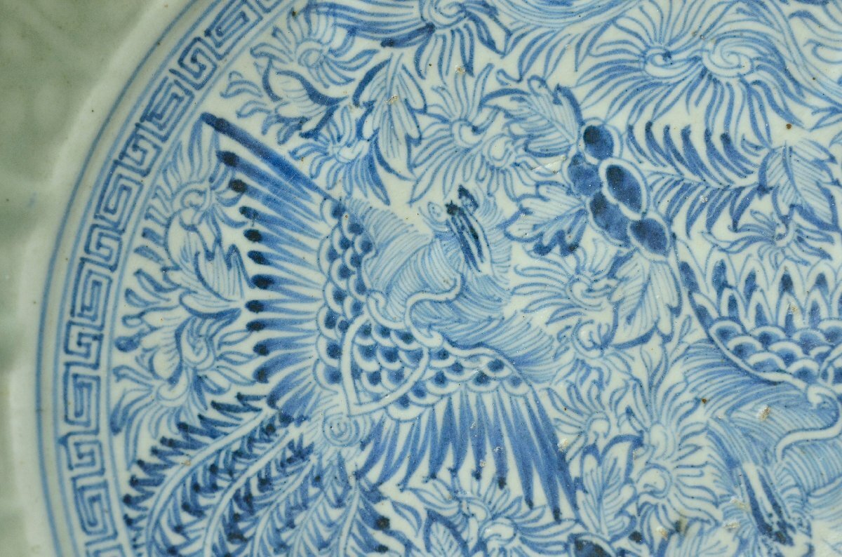 江戸時代 古伊万里双鳥花草紋青磁大鉢