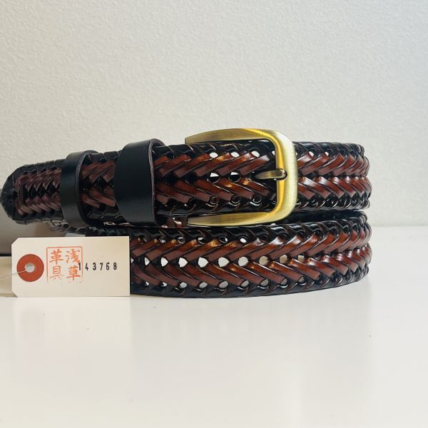 【浅草革具】フリーサイズ メンズ ベルト 編み込み イタリアンレザー 牛革 カジュアル 新品 未使用 男性 1円 レザー 無段階調整 ブラウン
