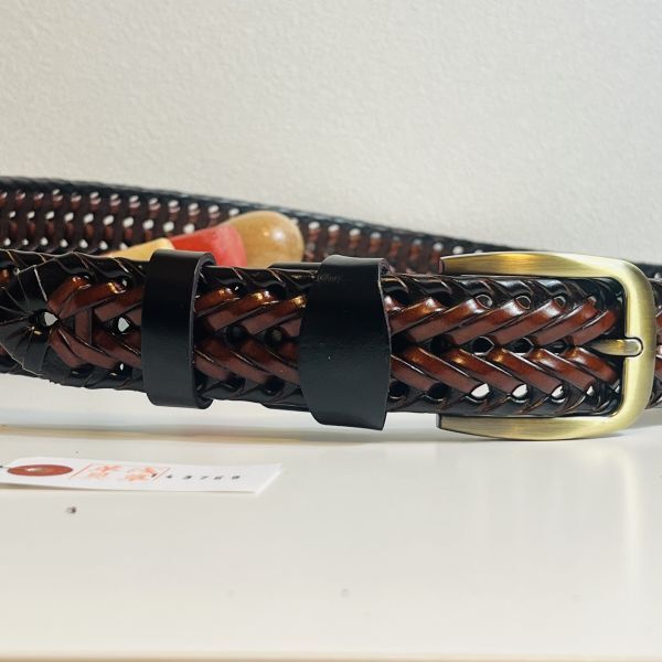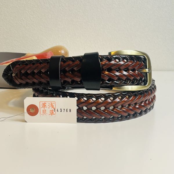 Product name: 【浅草革具】フリーサイズ メンズ ベルト 編み込み イタリアンレザー 牛革 カジュアル 新品 未使用 男性 1円 レザー 無段階調整 ブラウン
