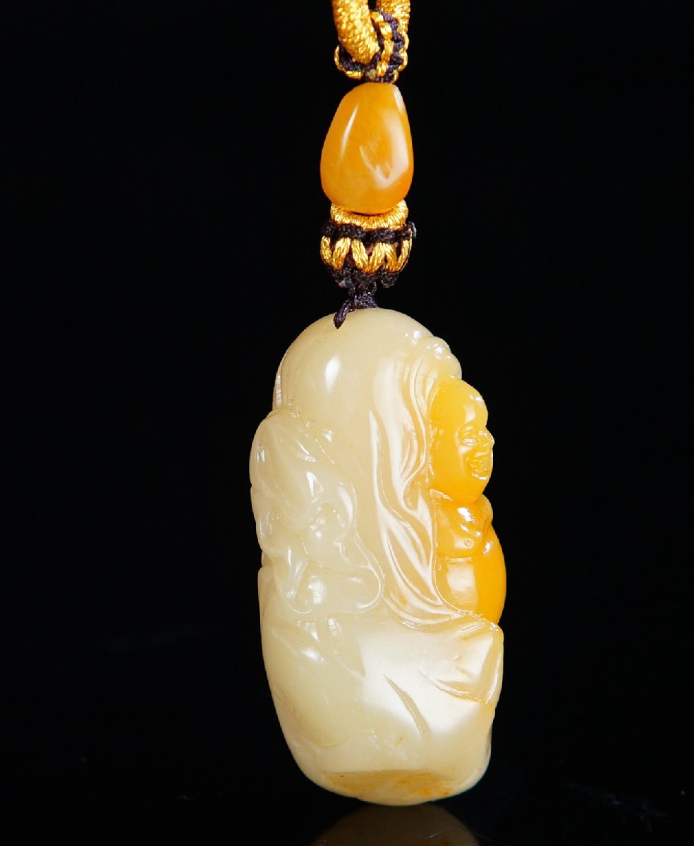 Product name: 【安】金石篆刻 寿山銀包金田黄石彫 弥勒仏掛件 極細工 古置物 古擺件 中国古美術 時代物 296