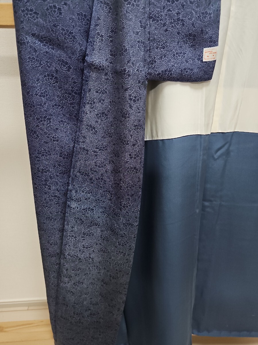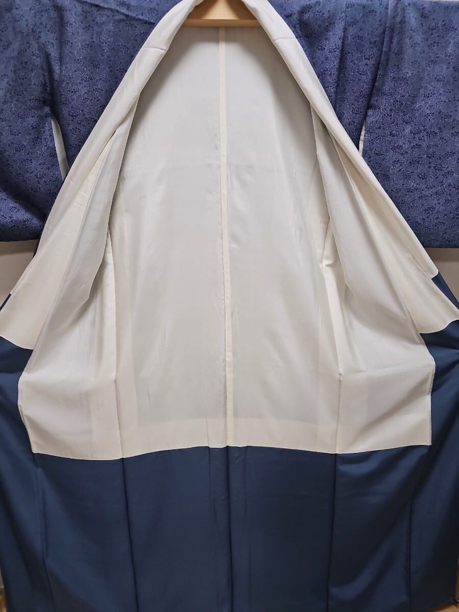 Product name: すずや■237【袷】正絹型染め江戸小紋花唐草文様 裄丈68cm  着丈164cm  藍系