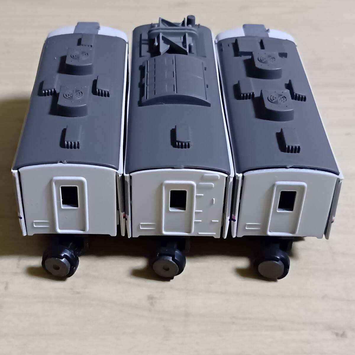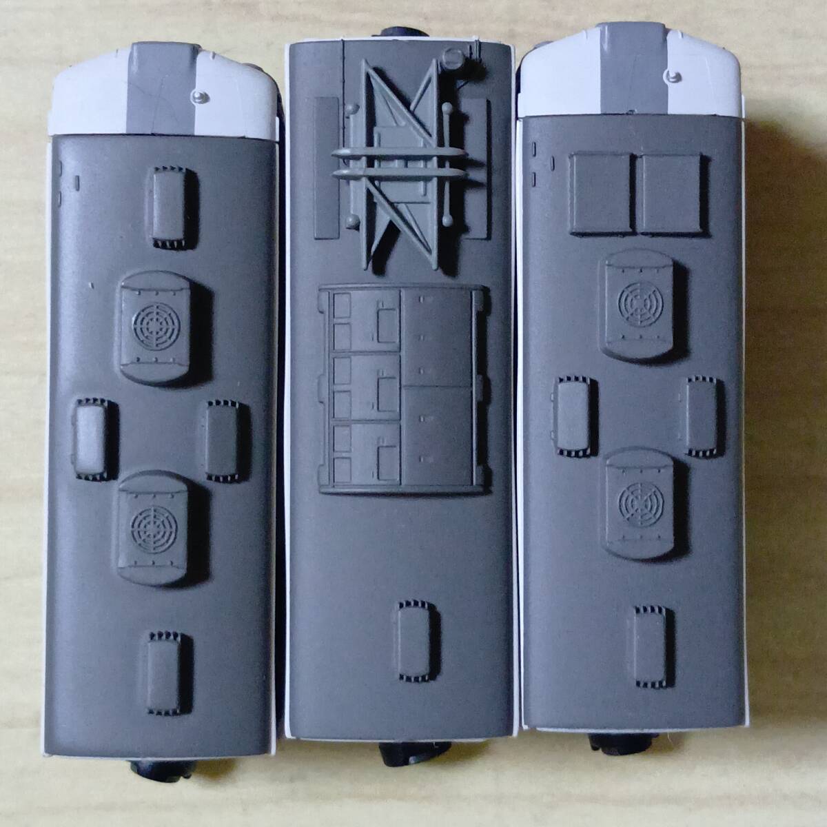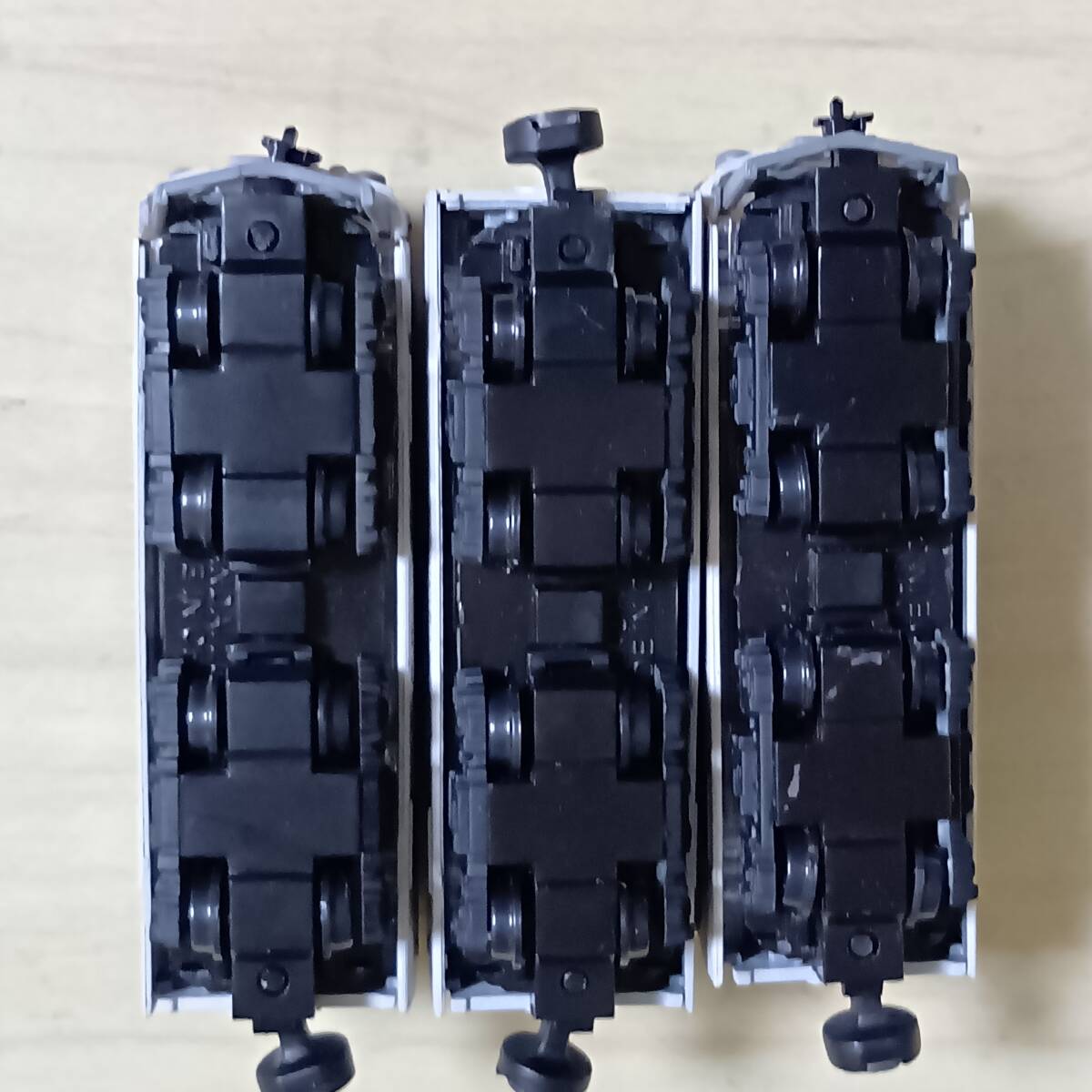 写真のもの送ります。きれいなものもあれば、塗装はげ、色付き、傷、欠品、壊れている(ボディー割れ、スカート割れ他)ものもあります。組間違いや他車部品(妻、レリーフ、パンタグラフ、スカート他)が使われている場合もあります。それらが、ついていない車両もあります。