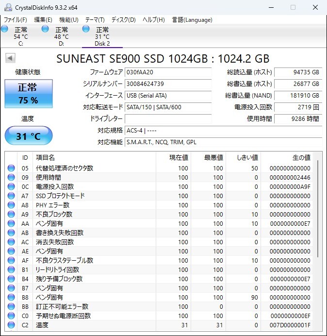 Product name: SUNEAST SE900 1024GB 1TB 動作確認済み
